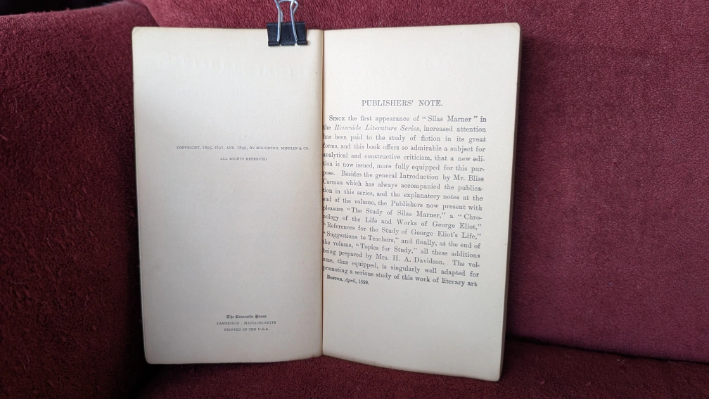 1899 Silas Marner by George Eliot Riverside Literature Series