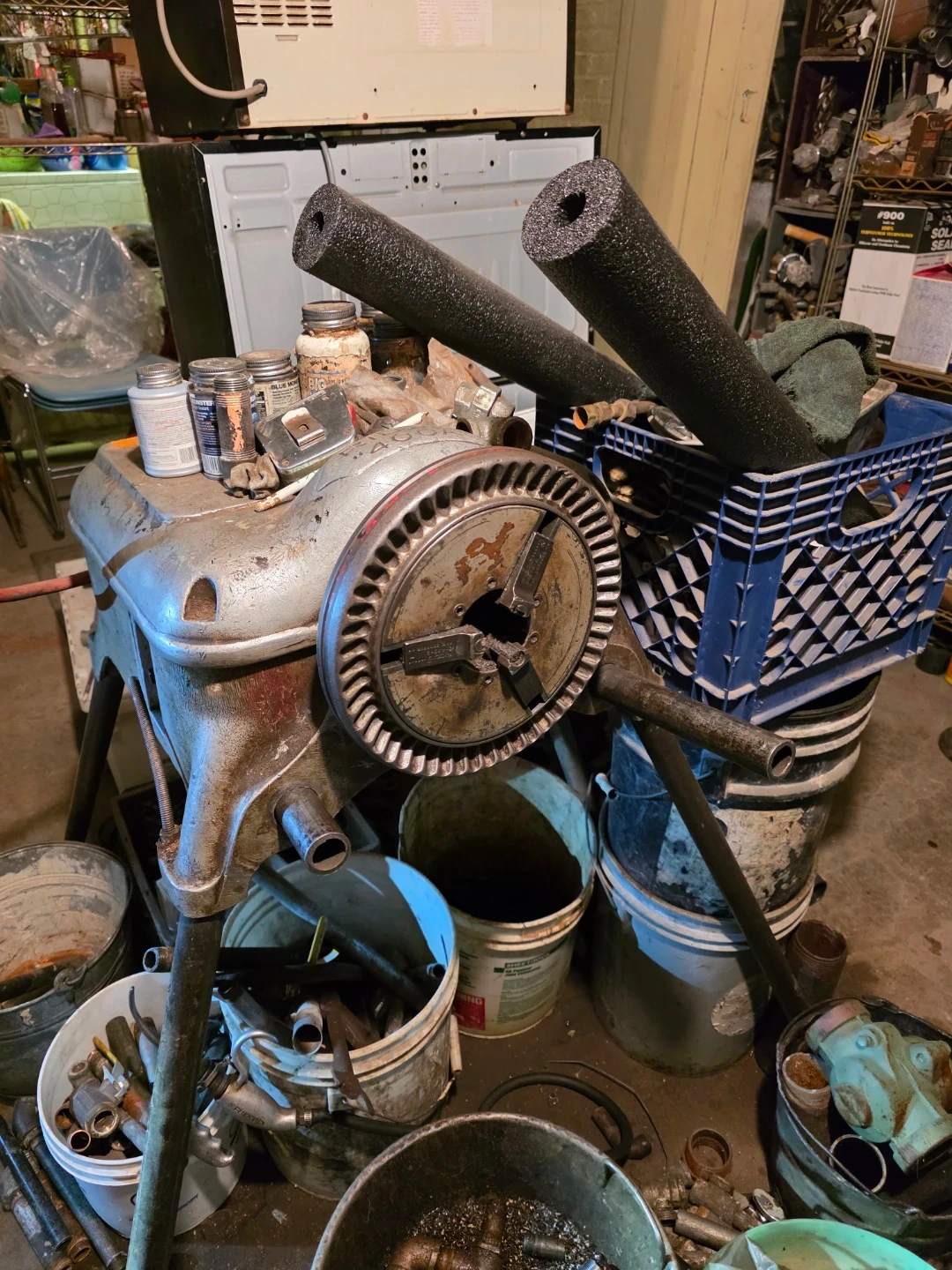 This is a RIDGID "400A" pipe threader. It appears to be an older, heavy-duty model. This tool is useful for plumbers and pipefitters.