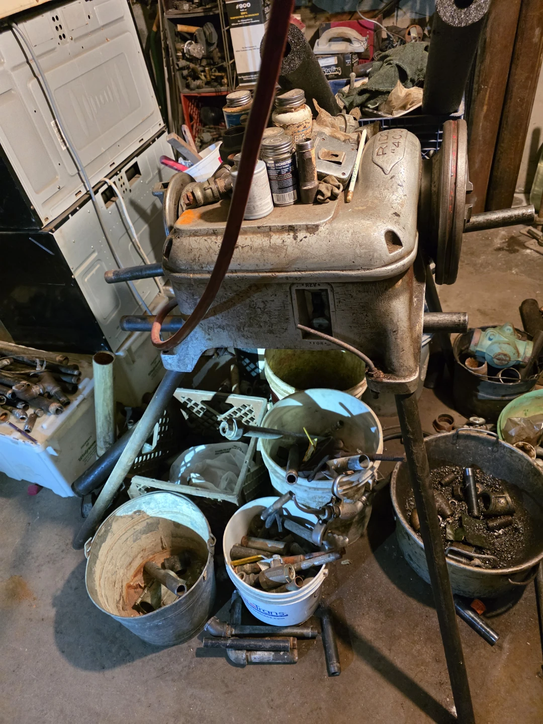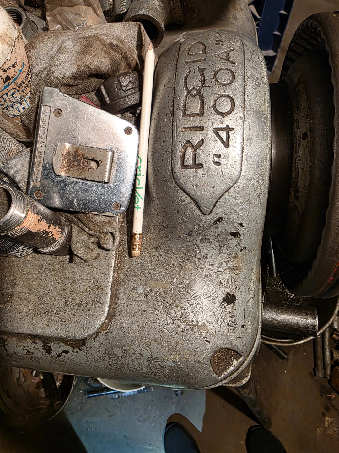 This is a RIDGID "400A" pipe threader. It appears to be an older, heavy-duty model. This tool is useful for plumbers and pipefitters.