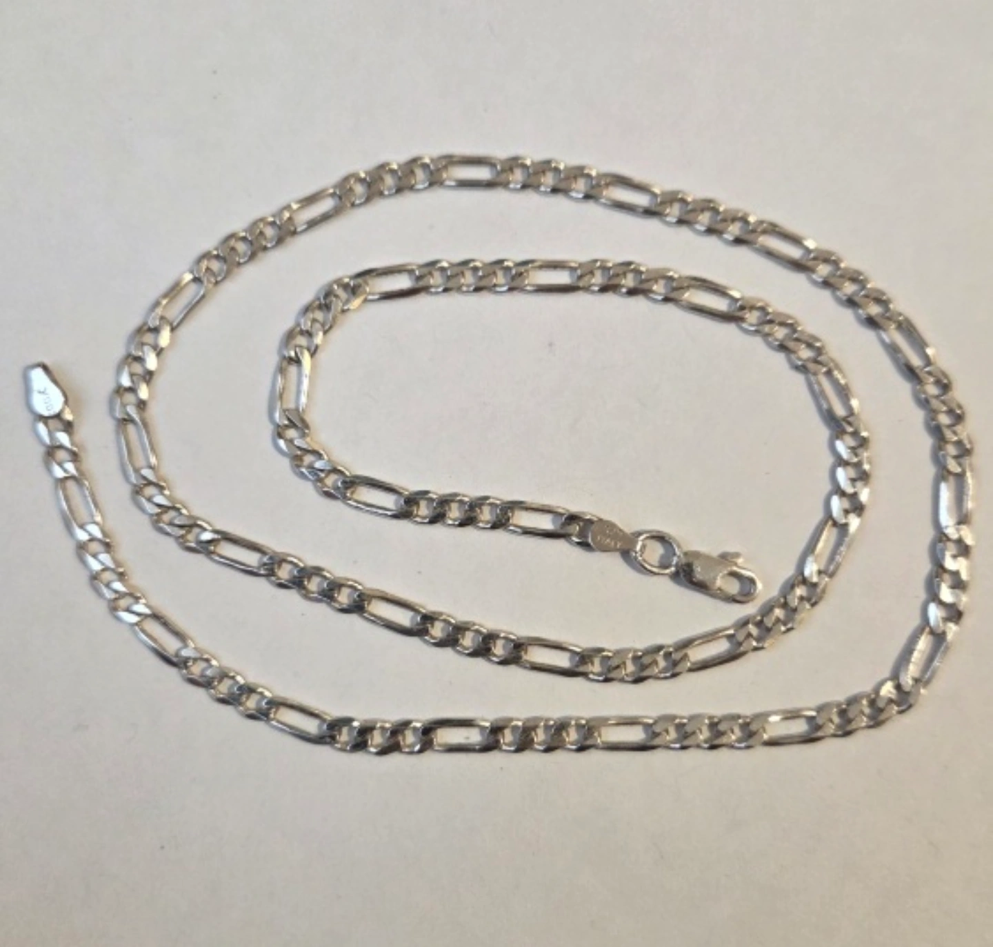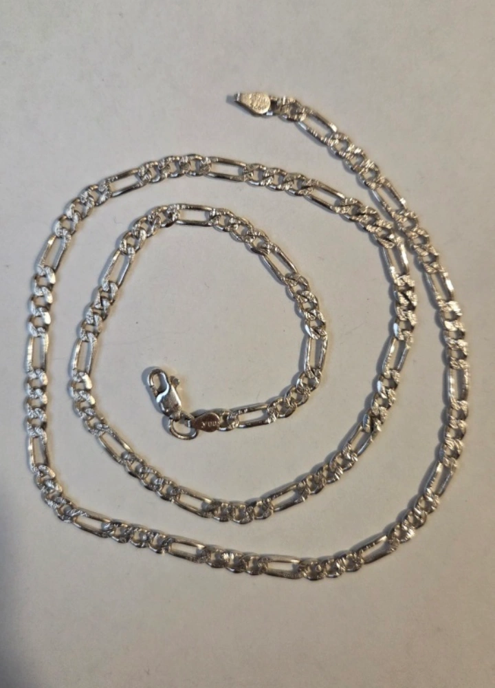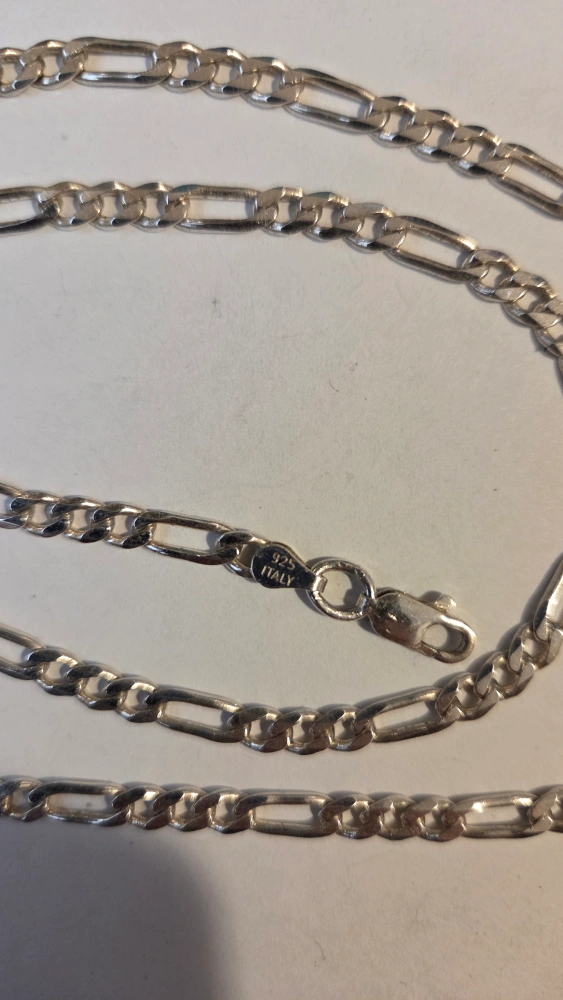 Selling a sterling silver Figaro chain necklace. It's marked '925 Italy'. The necklace is in good condition might just need a professional deep cleaning.