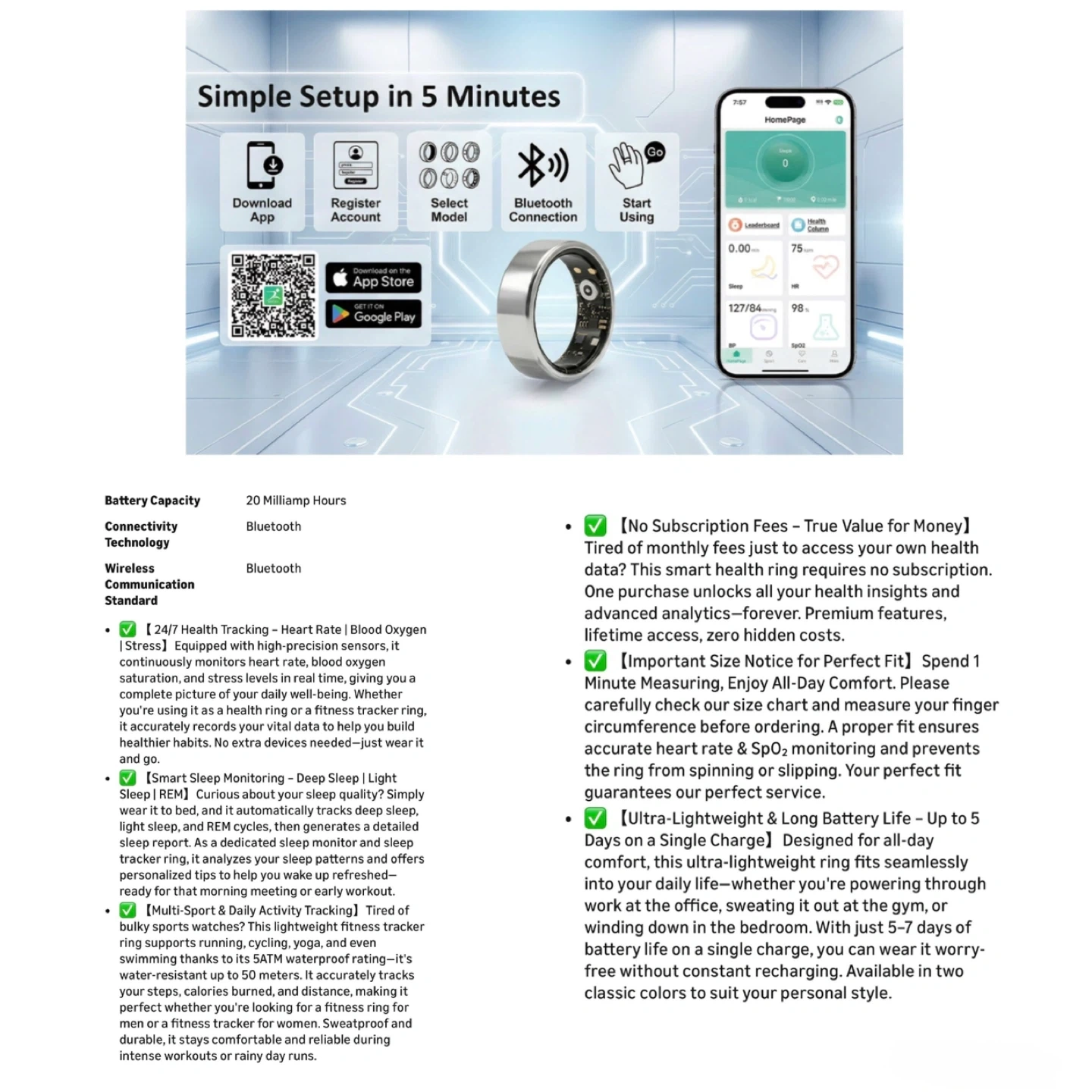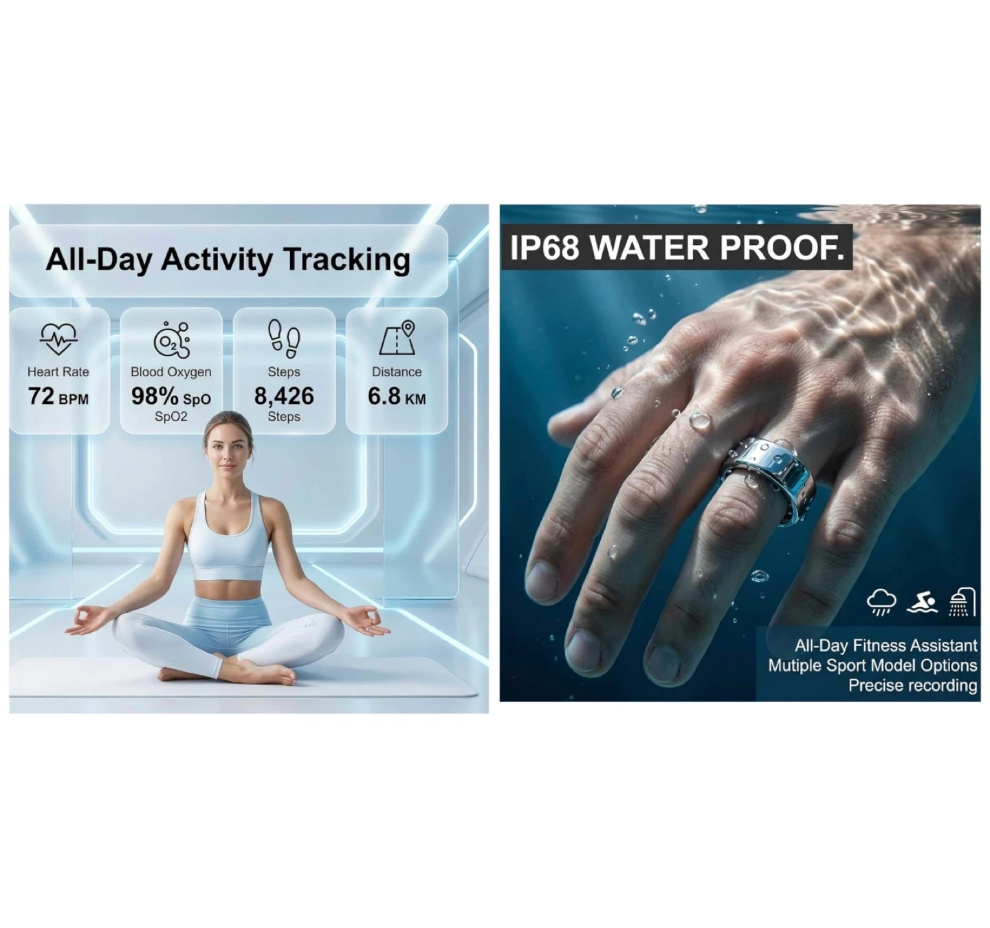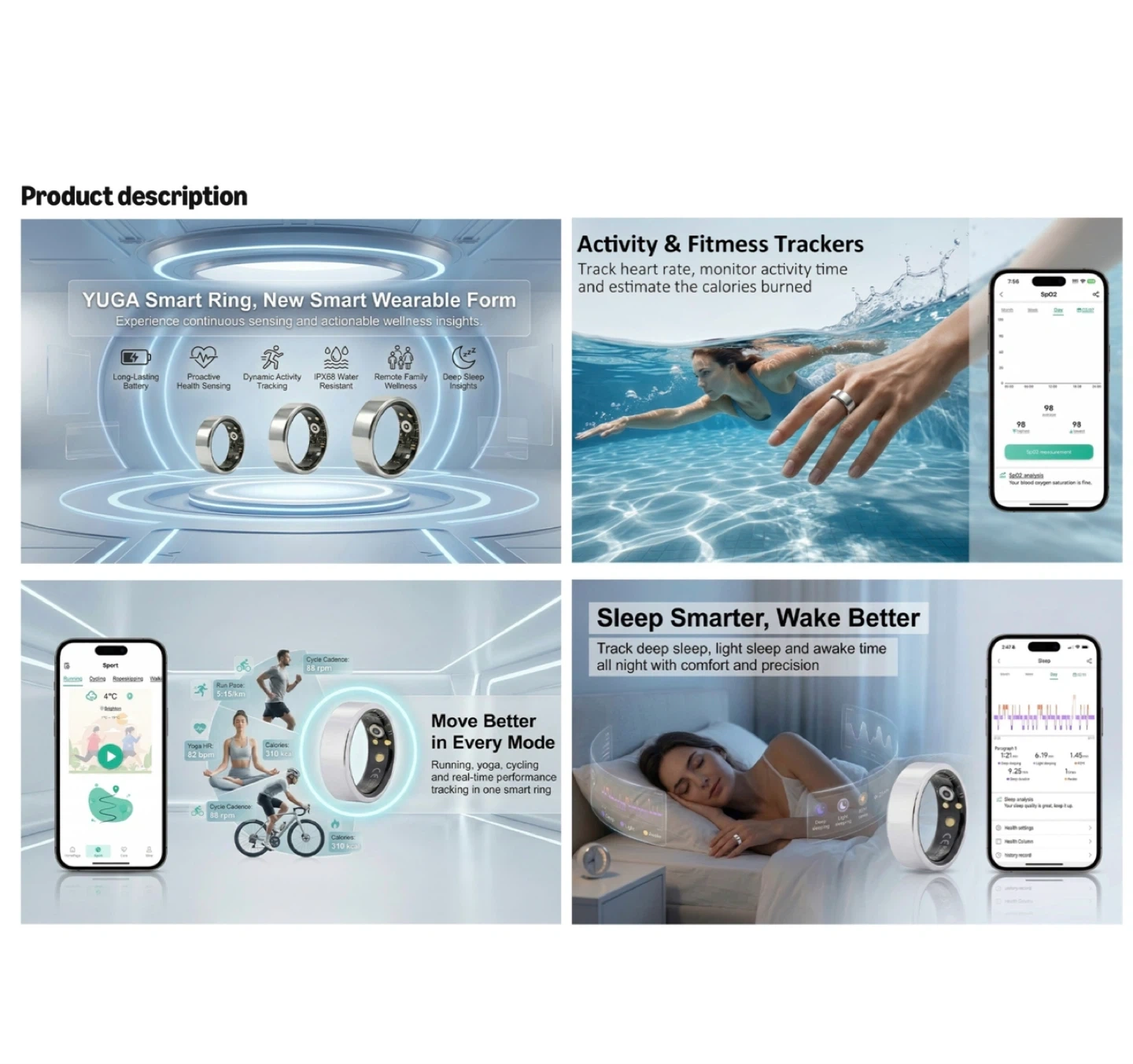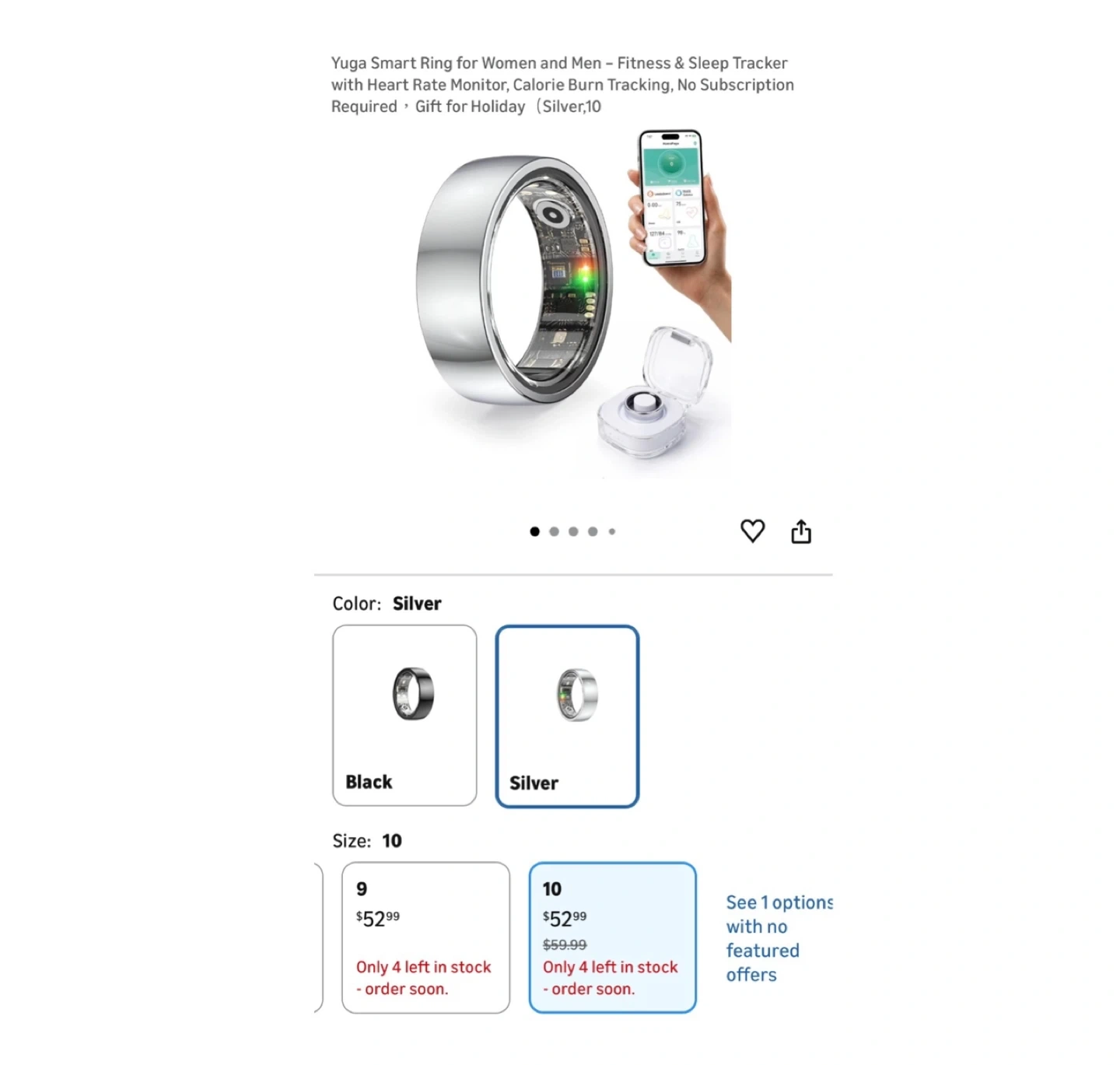 Brand new Yuga Smart Ring for Women and Men – Fitness & Sleep Tracker with Heart Rate Monitor, Calorie Burn Tracking, No Subscription Required,Gift for Holiday(Silver,10)