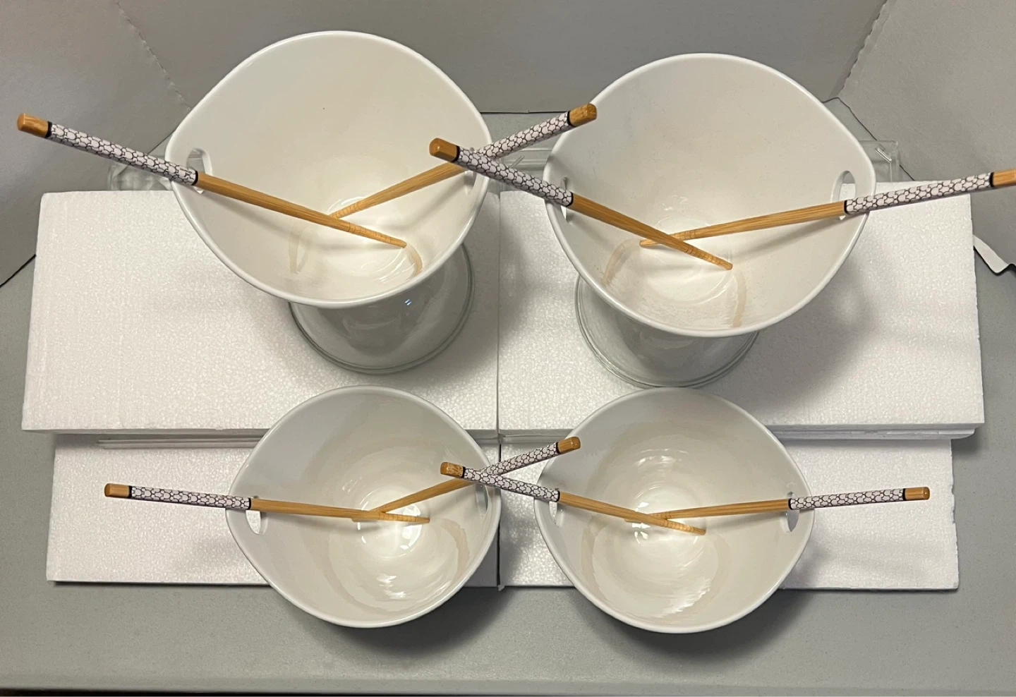 • Includes 4 bowls + 4 matching chopstick pairs