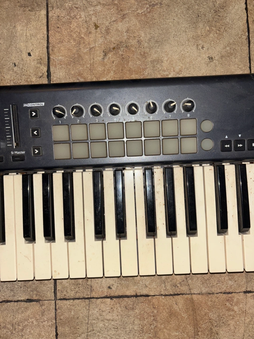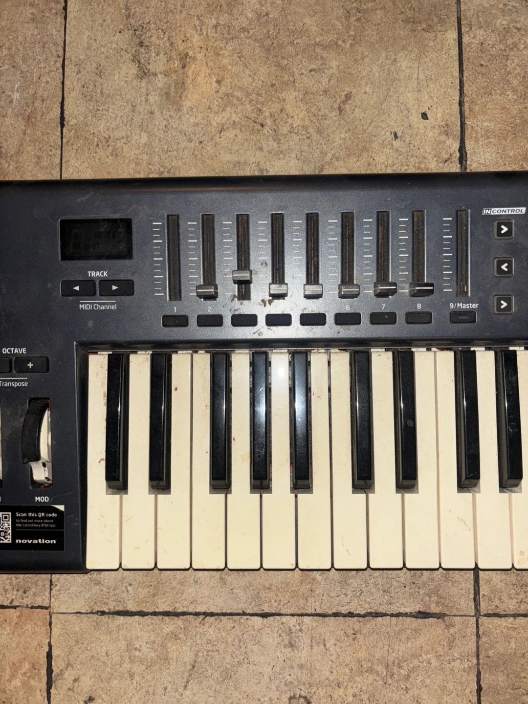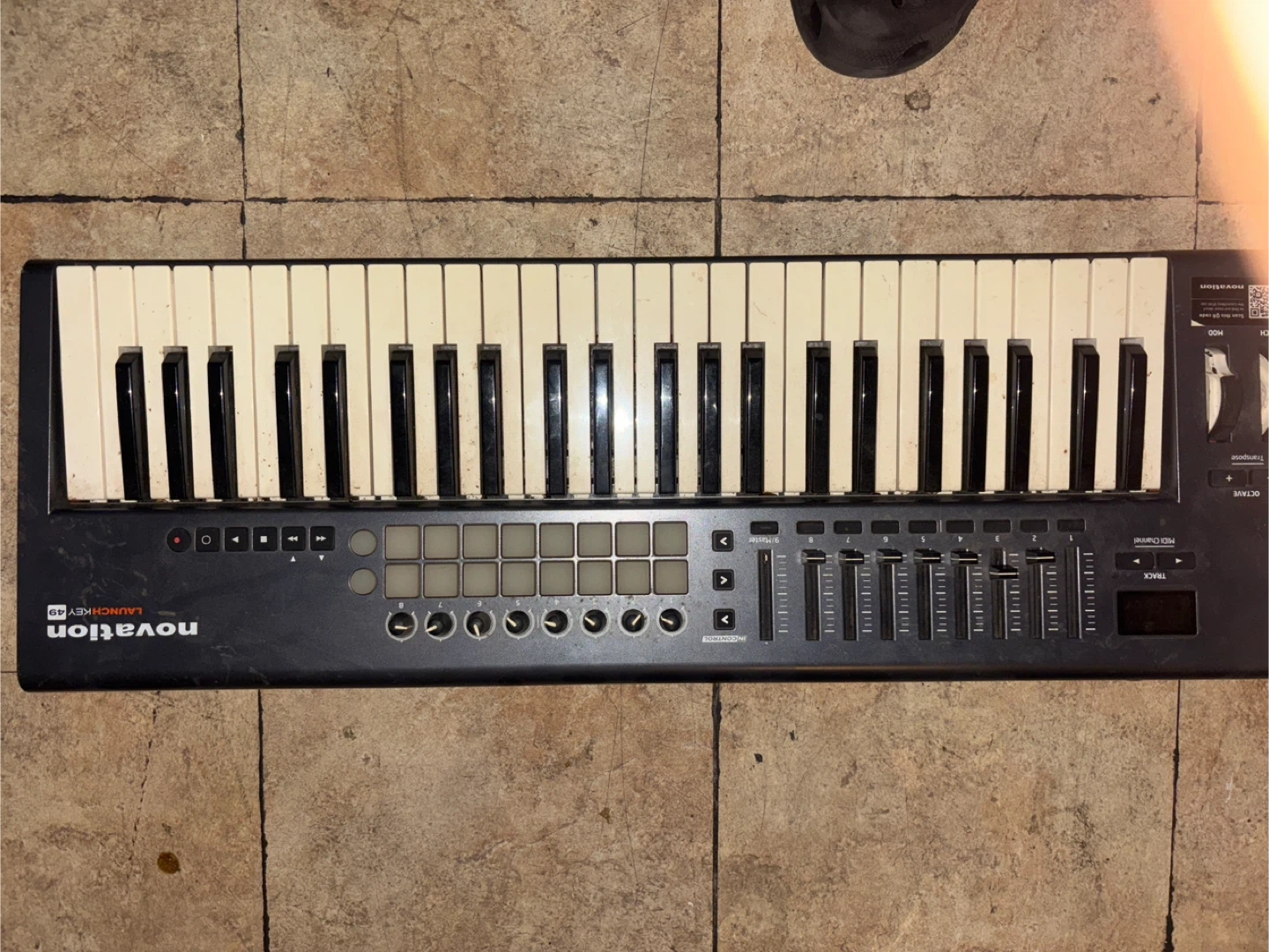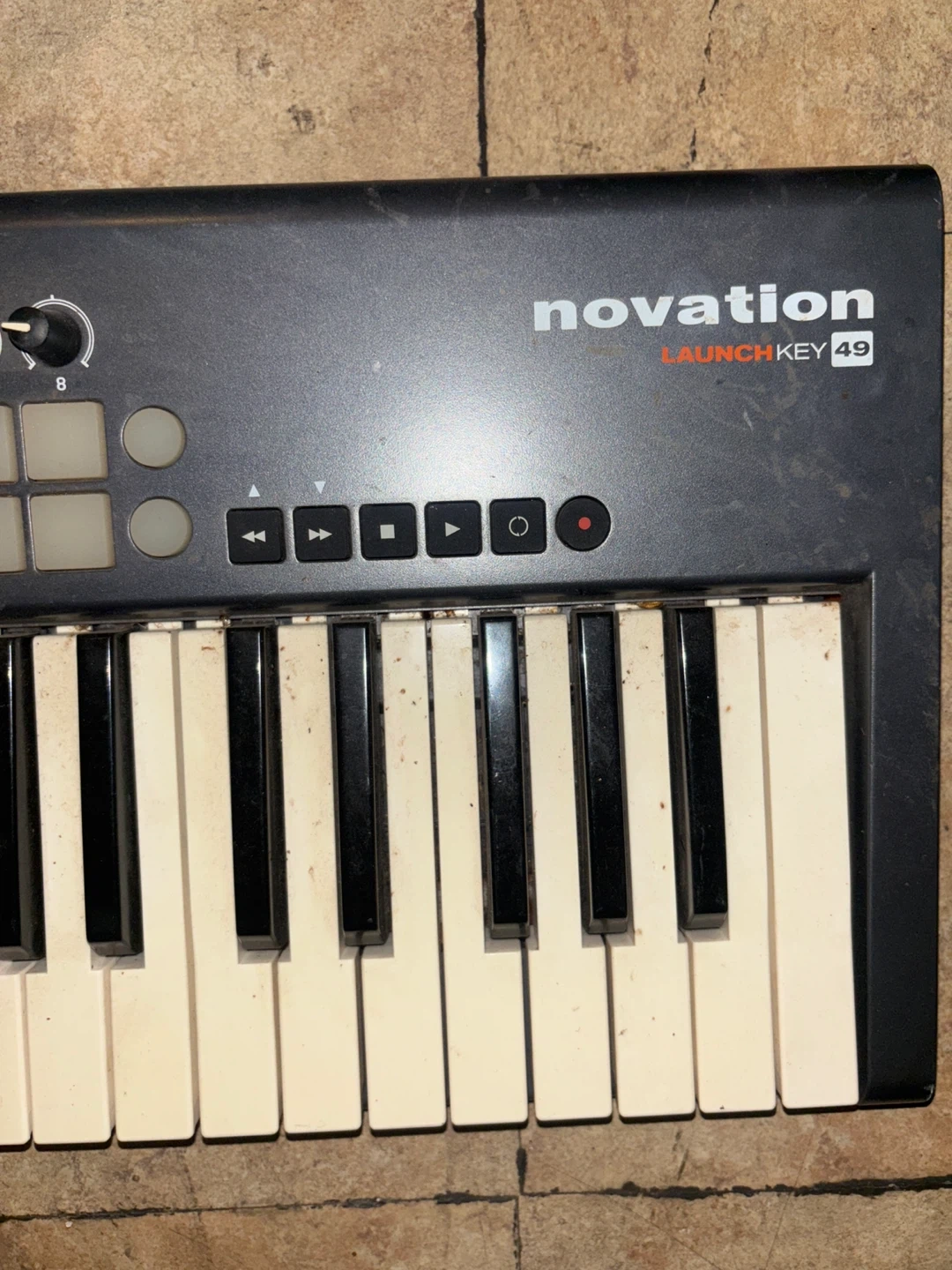 Novation Launchkey 49 MIDI keyboard controller. Features 49 keys, faders, knobs, and drum pads. This controller is compatible with most DAWs. (Was given to me by my grandfather was in his garage for years)