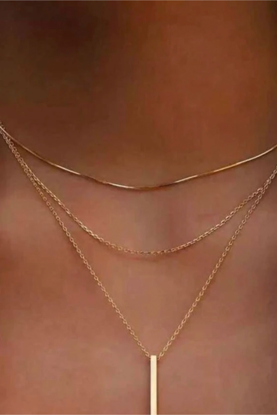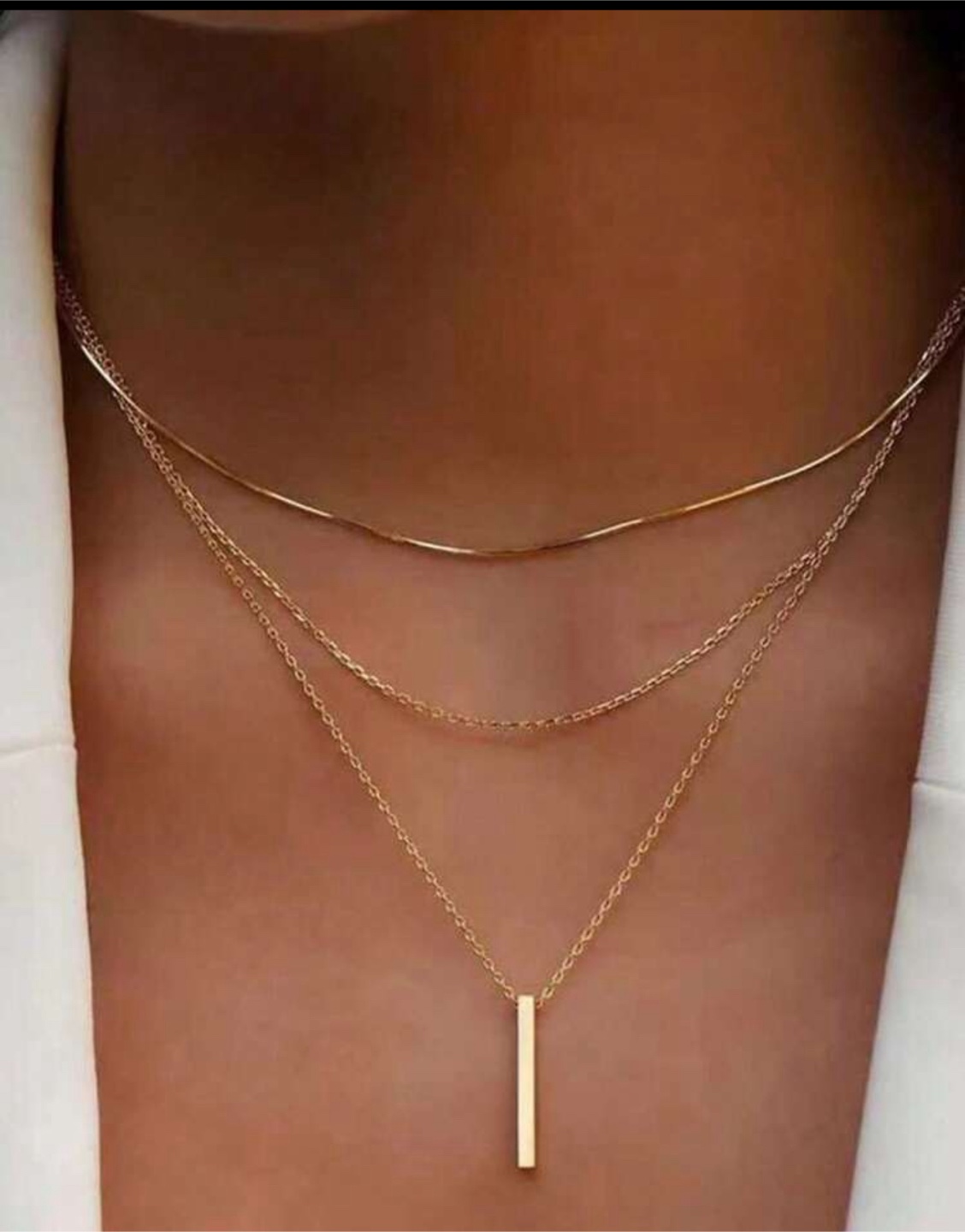 Selling a beautiful layered gold necklace! This elegant piece features three delicate chains of varying lengths, creating a stylish and modern look. Perfect for adding a touch of sophistication to any outfit