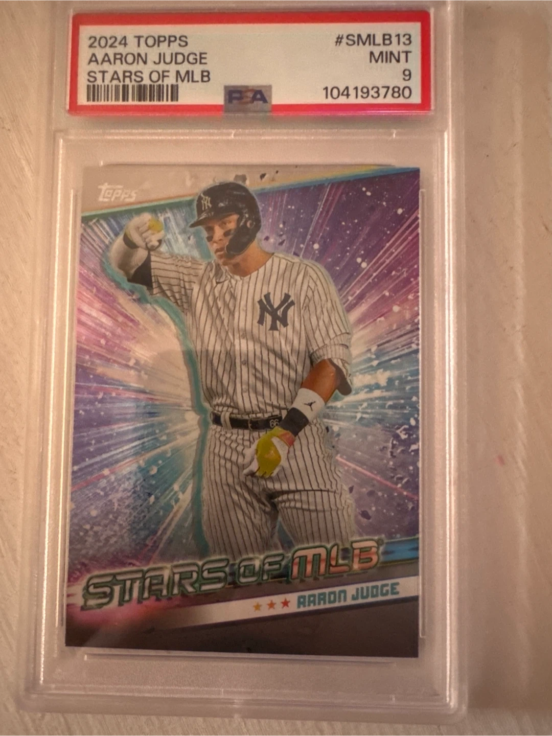 Selling a 2024 Topps Aaron Judge Stars of MLB card graded PSA Mint 9. This card features Aaron Judge of the New York Yankees and is part of the Stars of MLB series. A great addition to any baseball card collection!