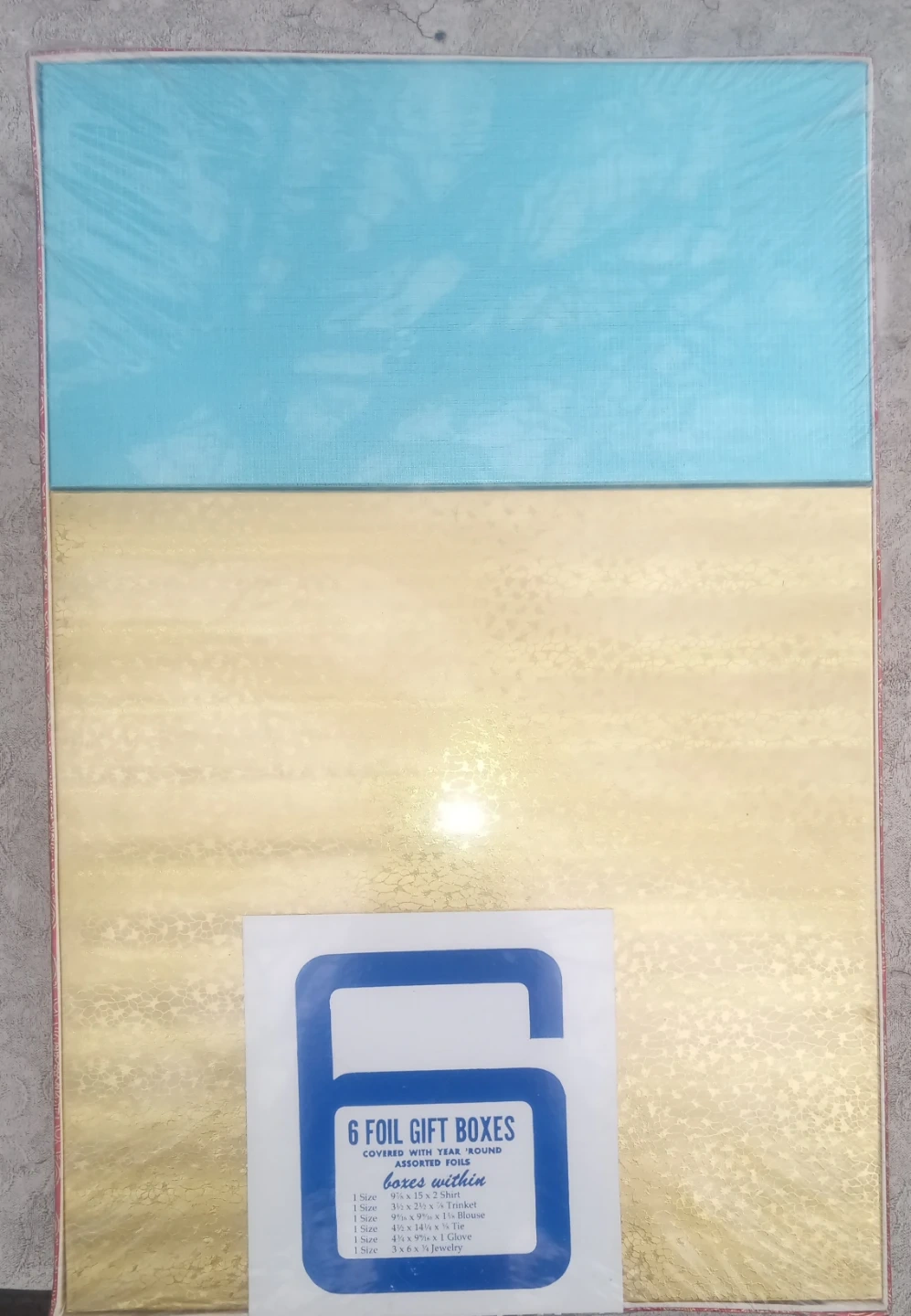 This set includes 6 foil gift boxes in assorted sizes. They're perfect for holding presents, favors, or jewelry. Available in a range of sizes for different items! I do have multiples of these factory sealed six box sets.
