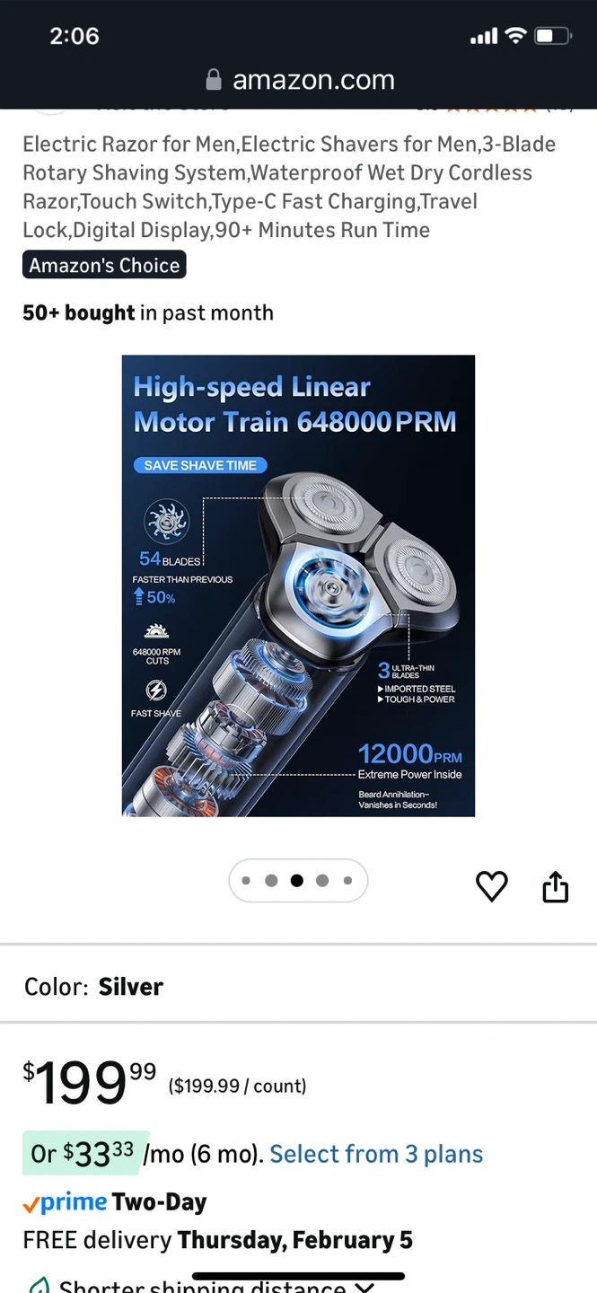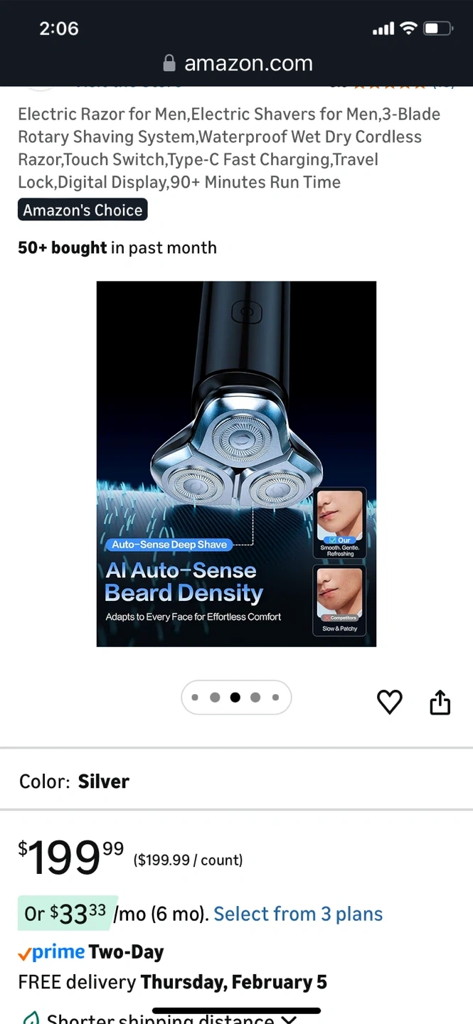 This electric razor offers a 3-blade rotary shaving system with fast charging and a waterproof design. It features a digital display and includes a travel lock. Offers 90+ minutes of run time on a full charge.