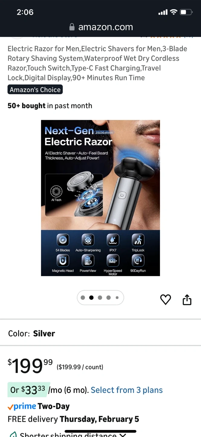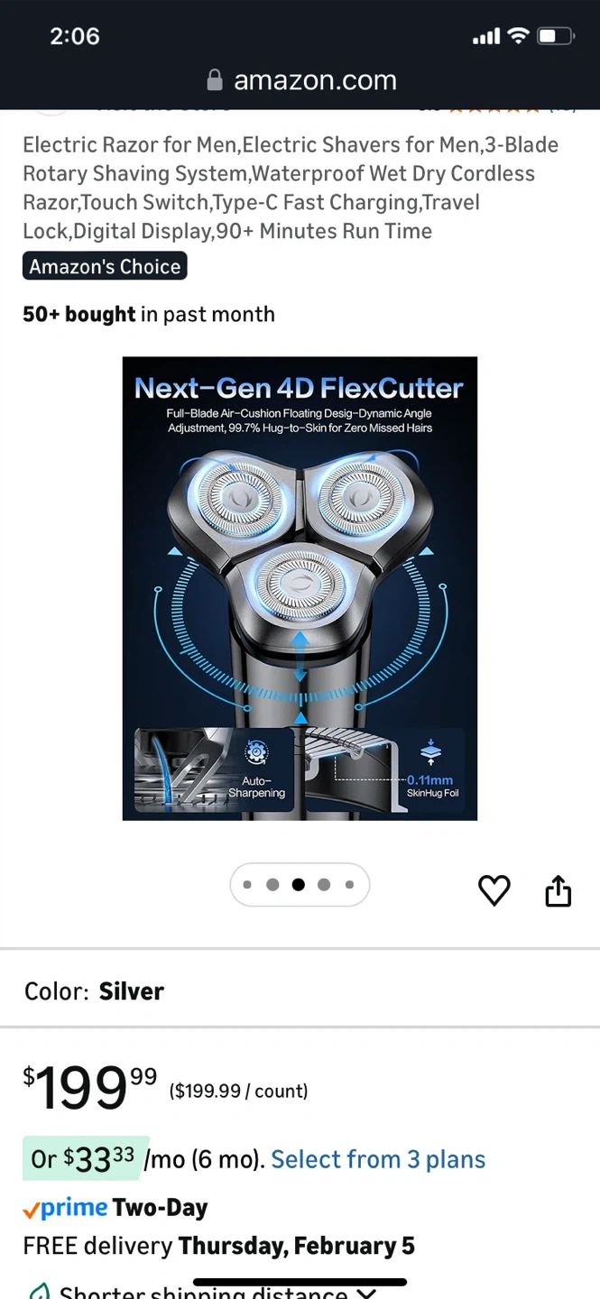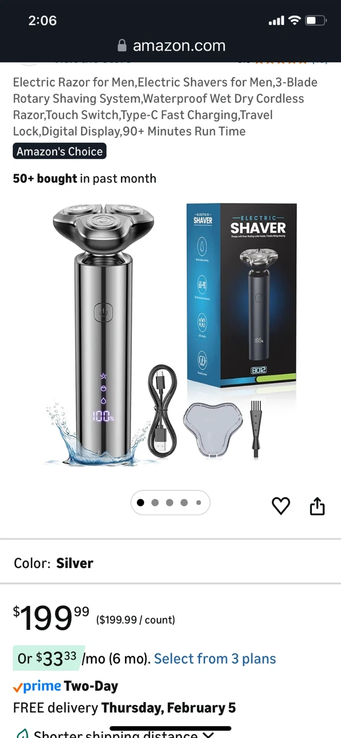 This electric razor offers a 3-blade rotary shaving system with fast charging and a waterproof design. It features a digital display and includes a travel lock. Offers 90+ minutes of run time on a full charge.