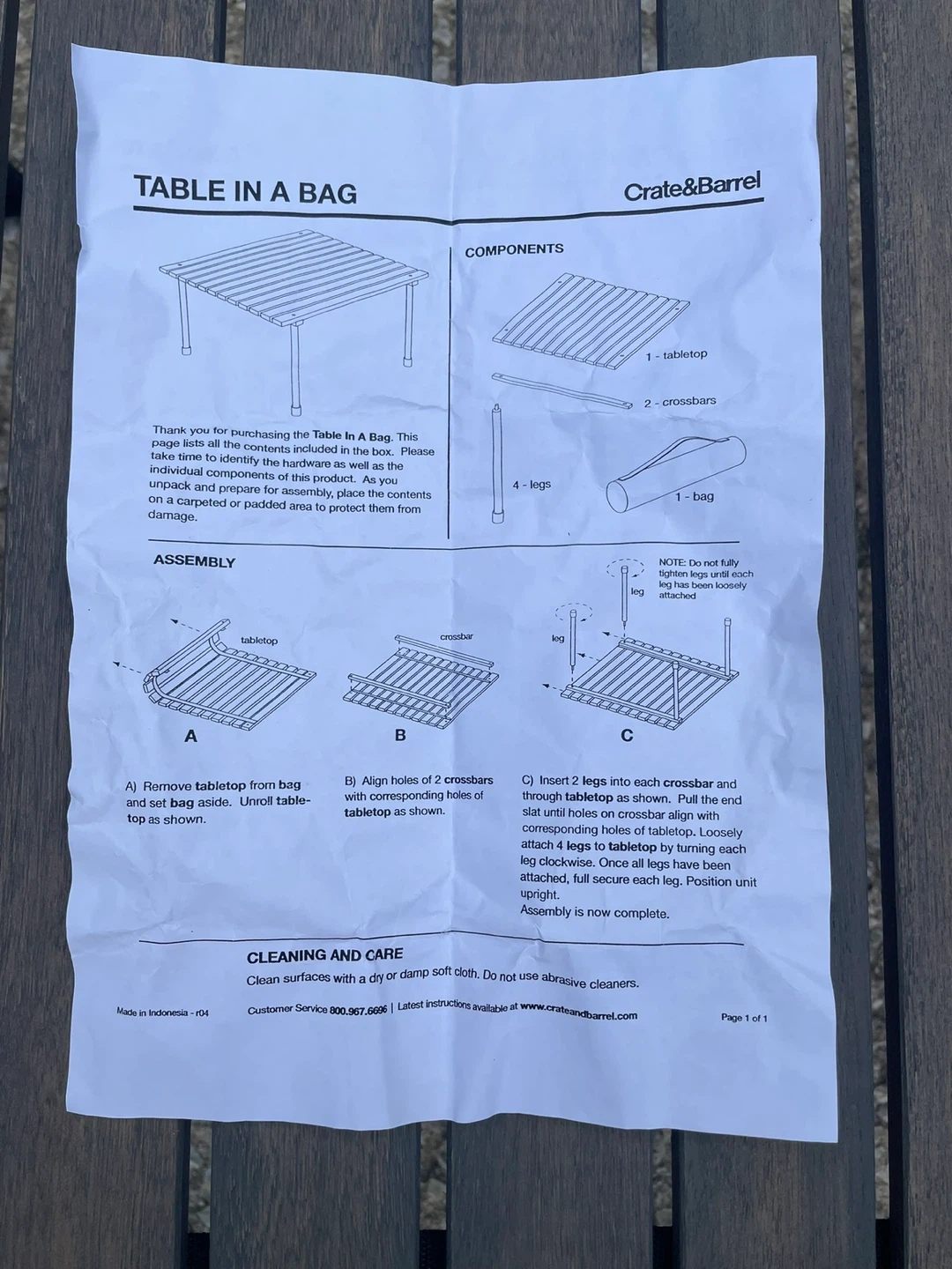Crate & Barrel Table in a Bag Portable Outdoor Table