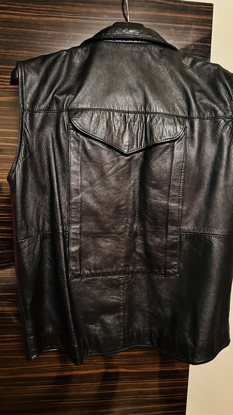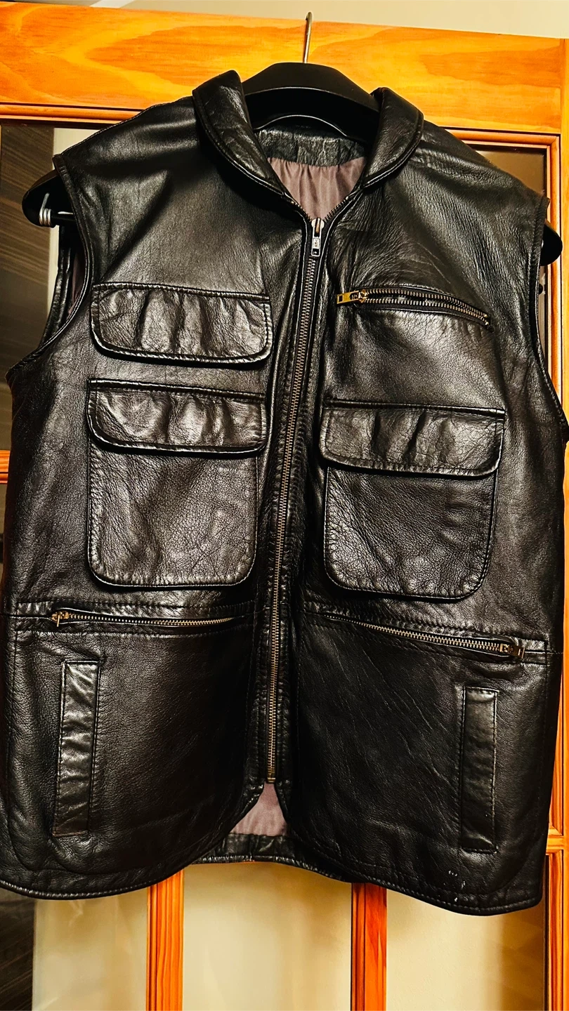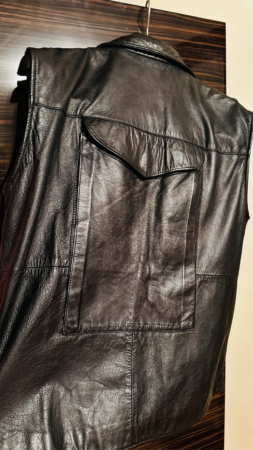 Classic black leather vest. It's 100% leather and styled in Italy. Features a zip-up front and multiple pockets. Great for layering!