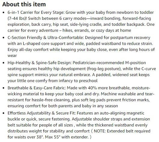 NEW~ Baby Carrier 2-in-1, Newborn–Toddler, Waist to 38"