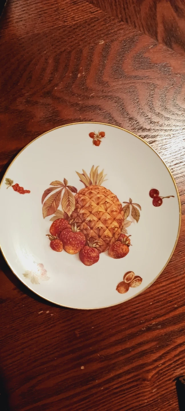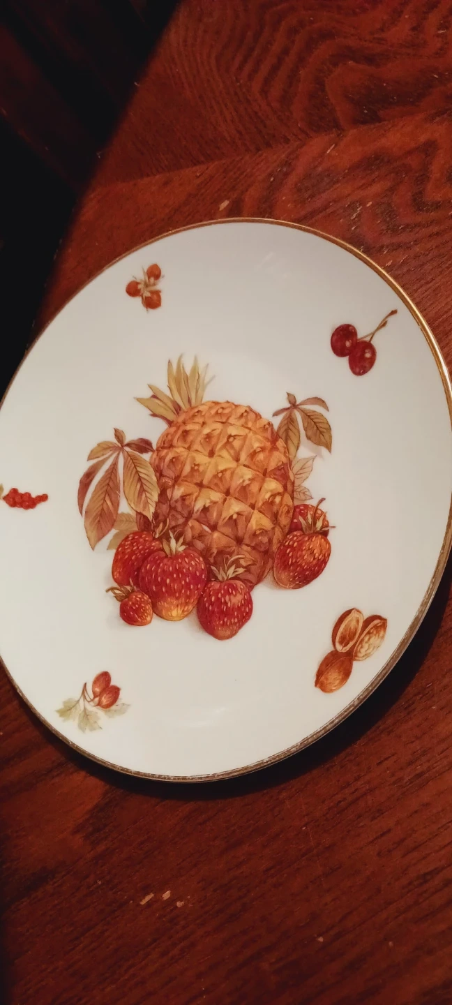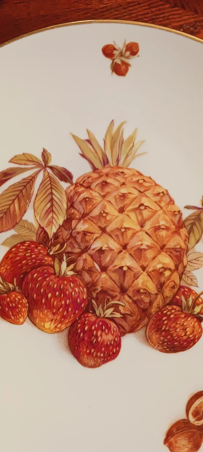 Debra Bavaria Signed Fine German Hand painted Porcelain Fruit Plate. This plate features a vibrant fruit design with a pineapple and strawberries. It's made of porcelain with a gold rim accent. The Bavaria marking indicates its origin. Made in Germany. Excellent Mint condition. 8" diameter. ALL MY PRICES ARE NEGOTIABLE !!