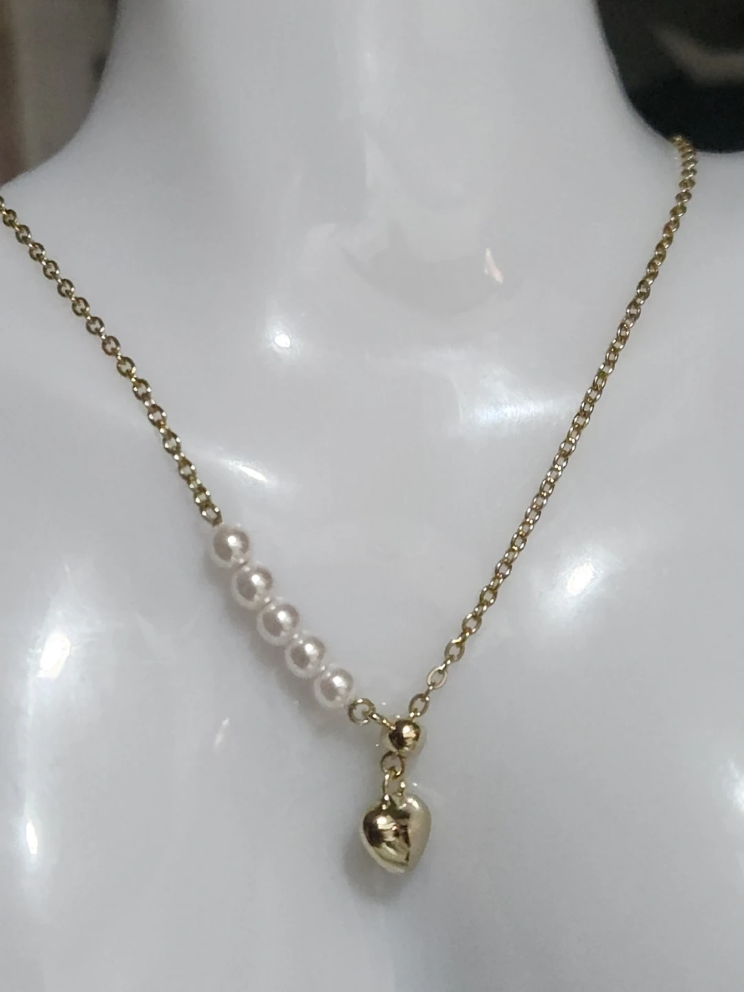 Gold Tone Necklace with Pearl Accents and Heart Charm