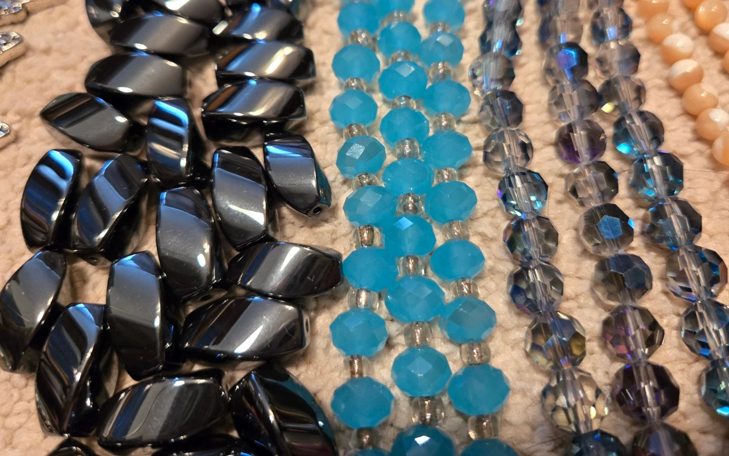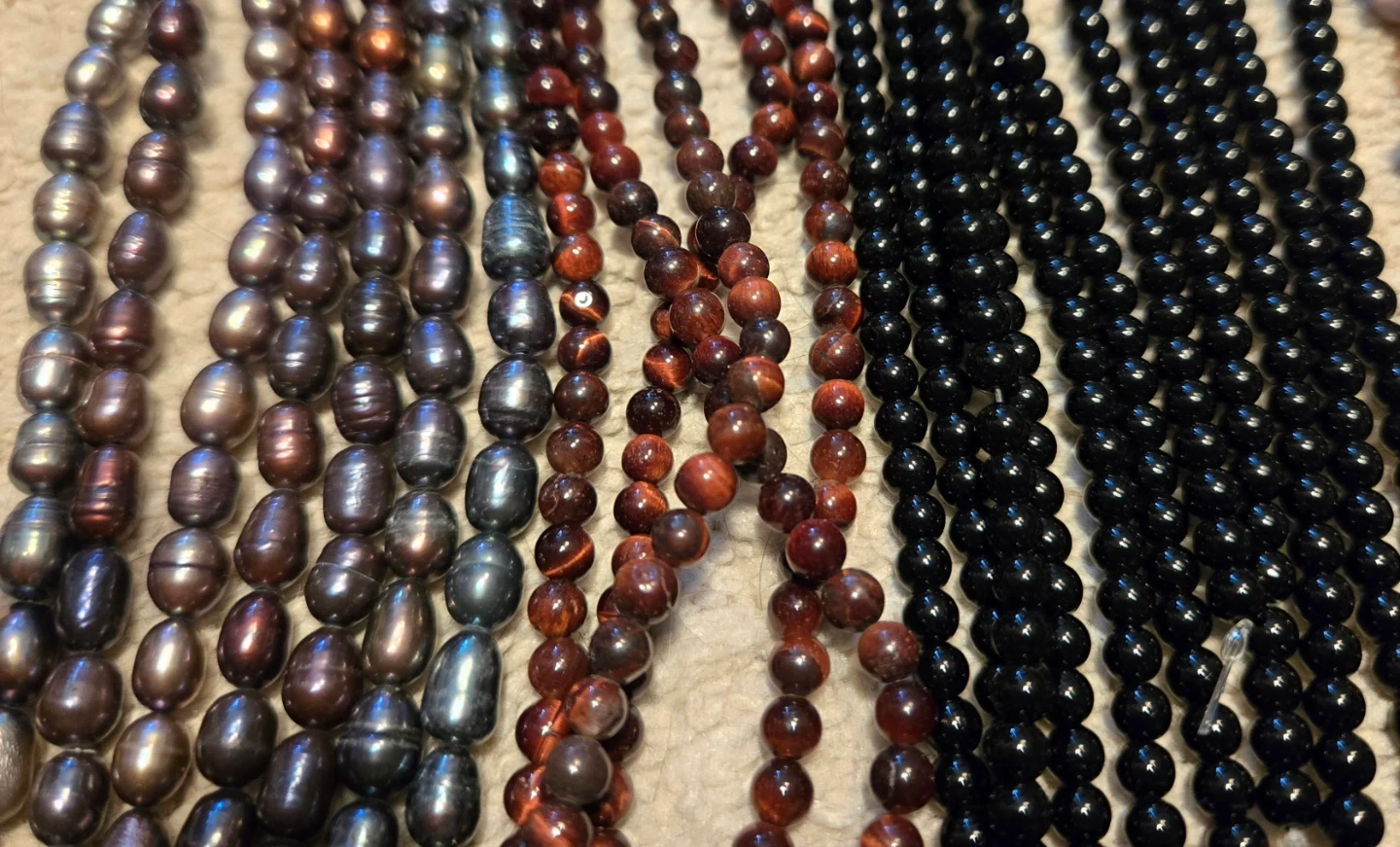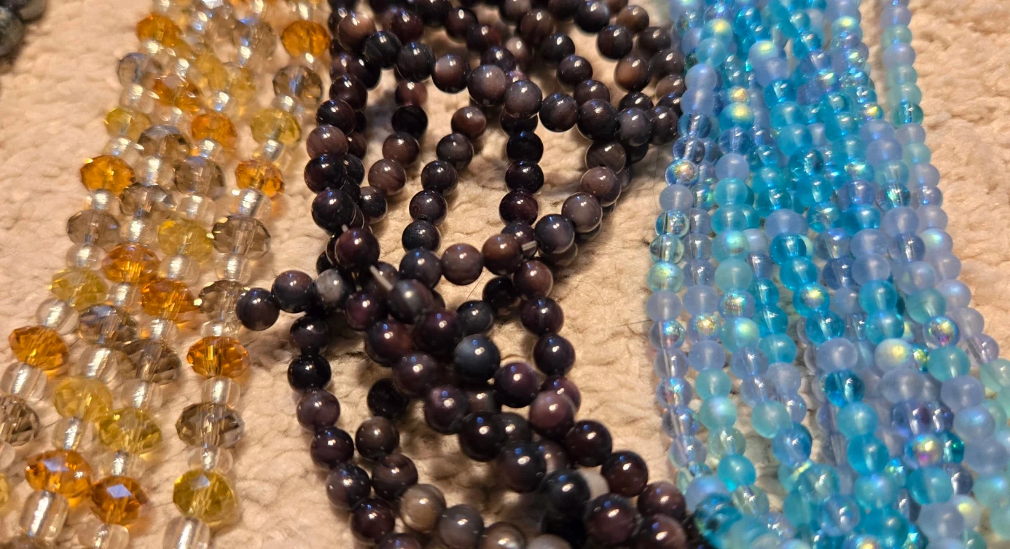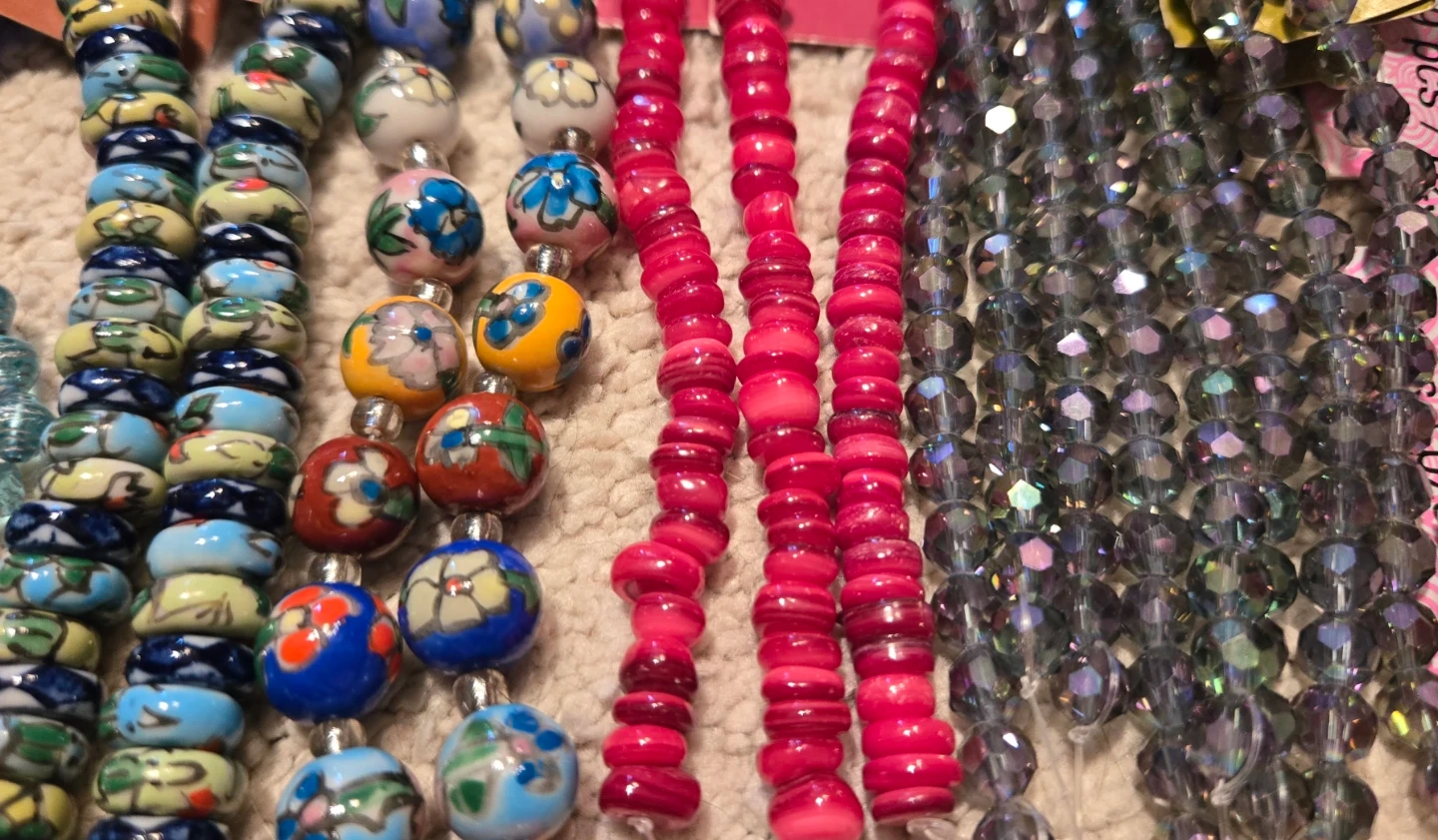 Assorted semi-precious stone and glass beads. Various colors and styles. Great for jewelry making or crafting.