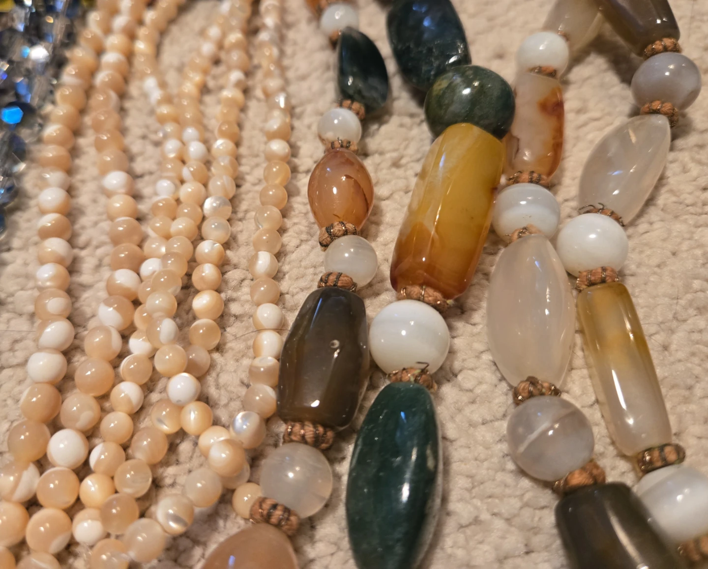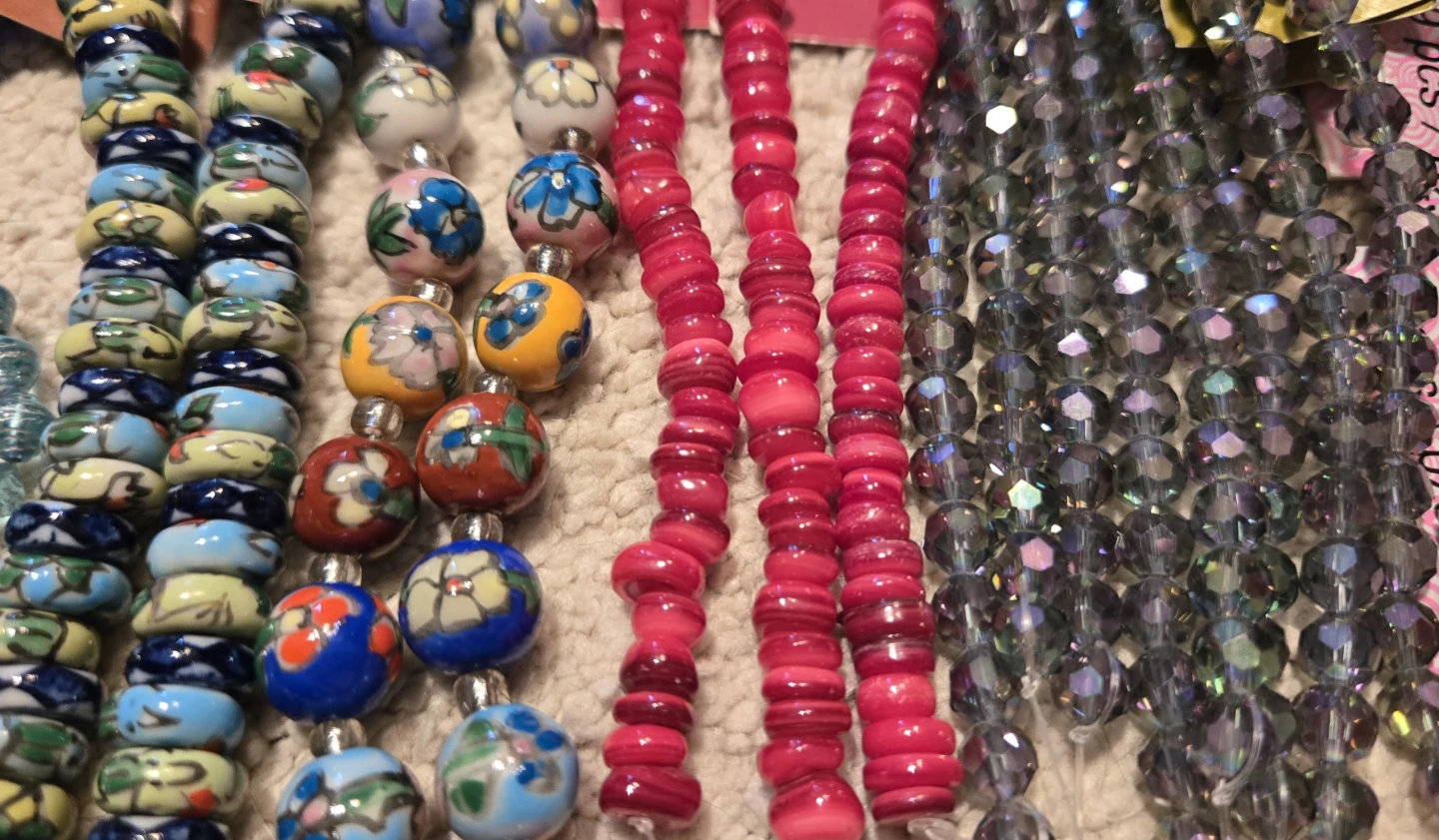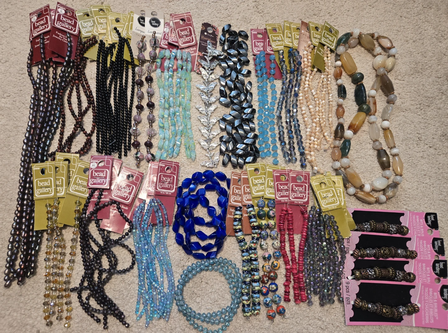 Assorted semi-precious stone and glass beads. Various colors and styles. Great for jewelry making or crafting.