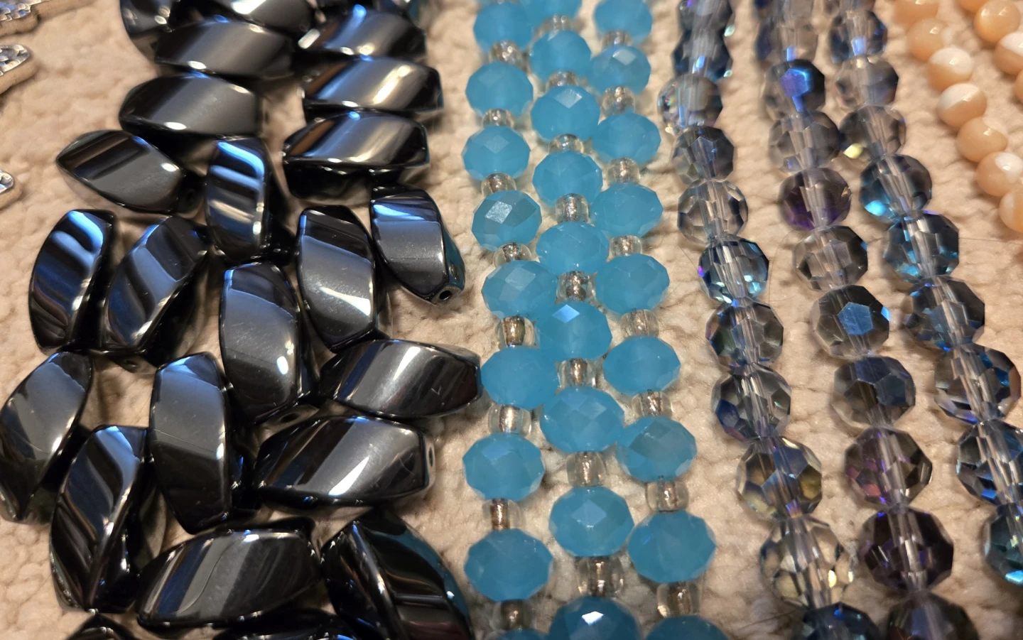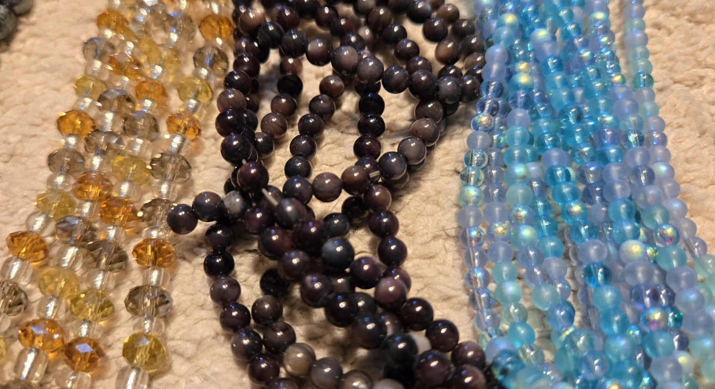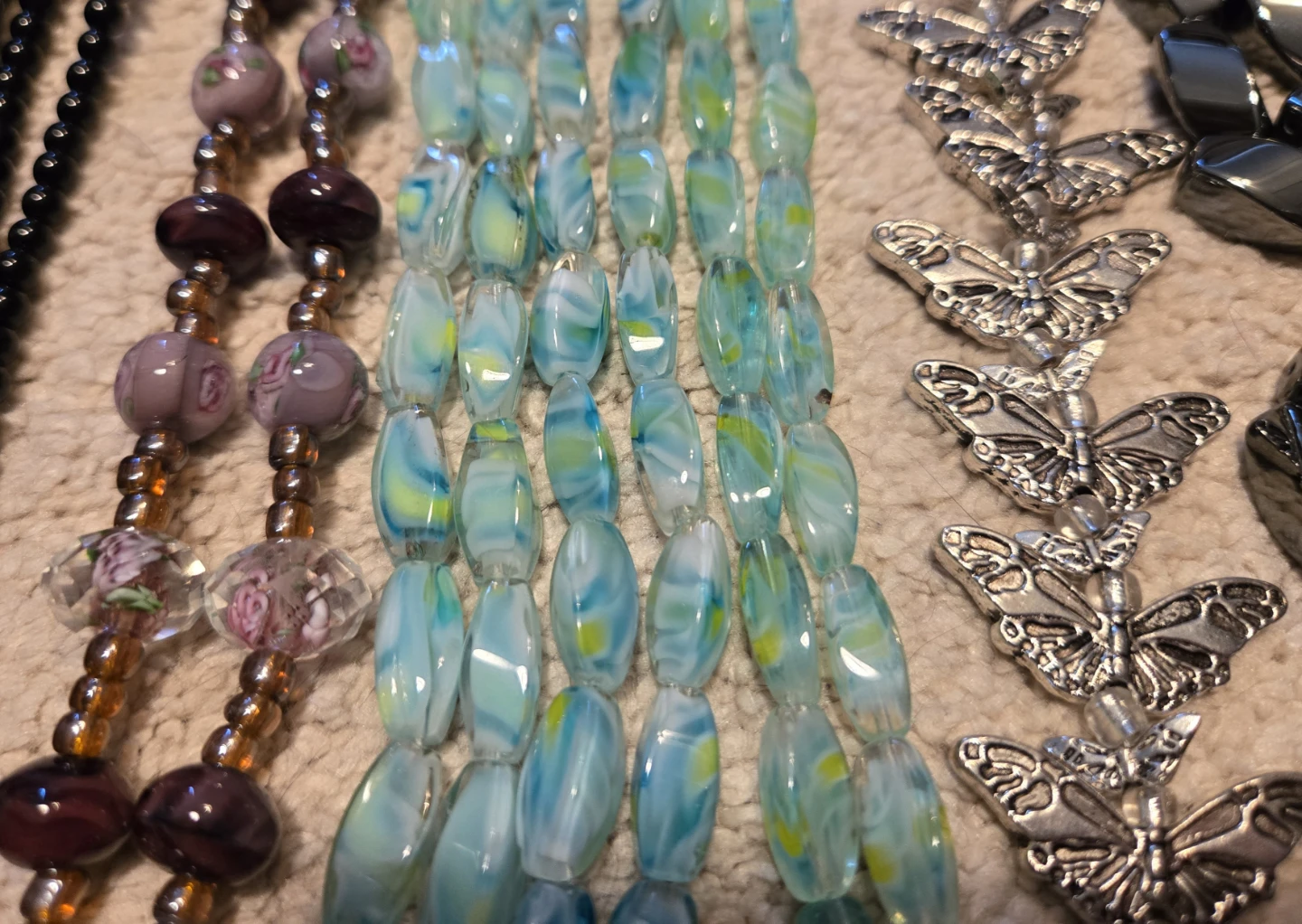 Assorted semi-precious stone and glass beads. Various colors and styles. Great for jewelry making or crafting.