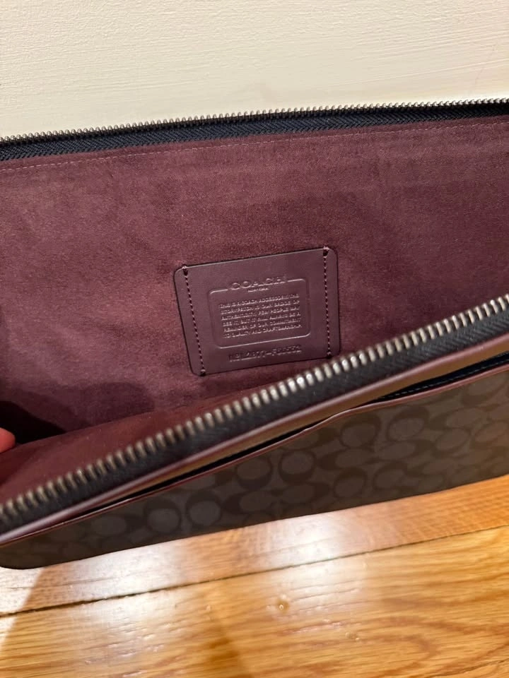 • Iconic Coach Aesthetic: Signature charcoal "C" pattern with a luxurious burgundy soft-touch interior to prevent scratches.