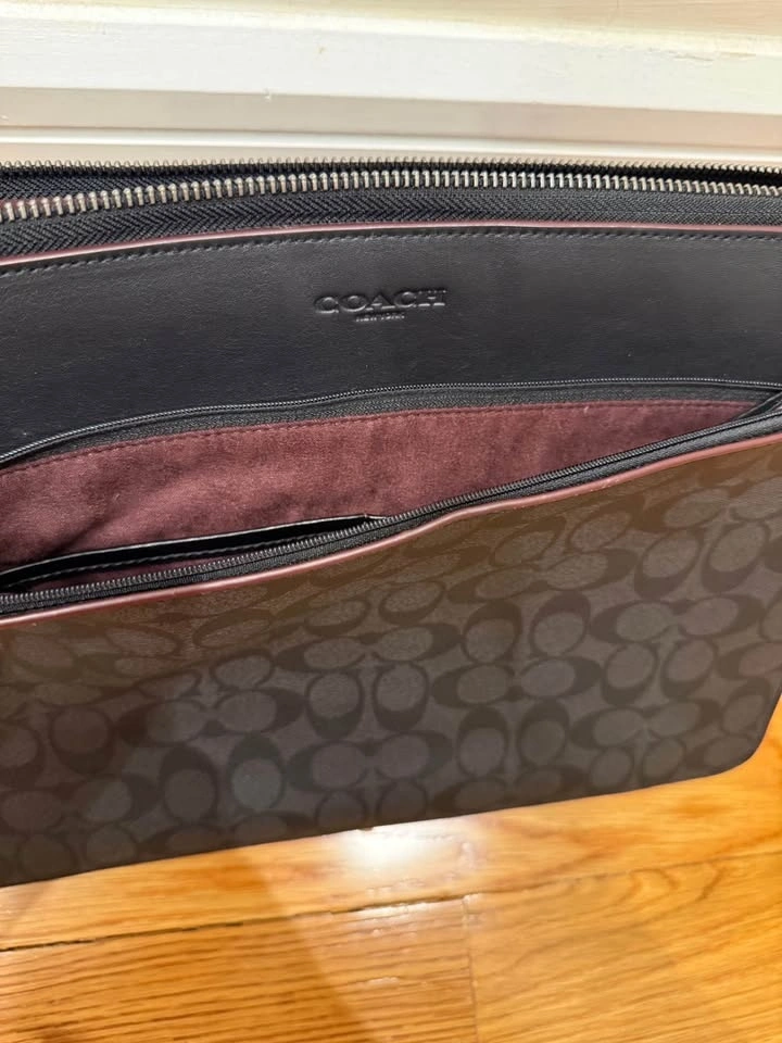 • Iconic Coach Aesthetic: Signature charcoal "C" pattern with a luxurious burgundy soft-touch interior to prevent scratches.