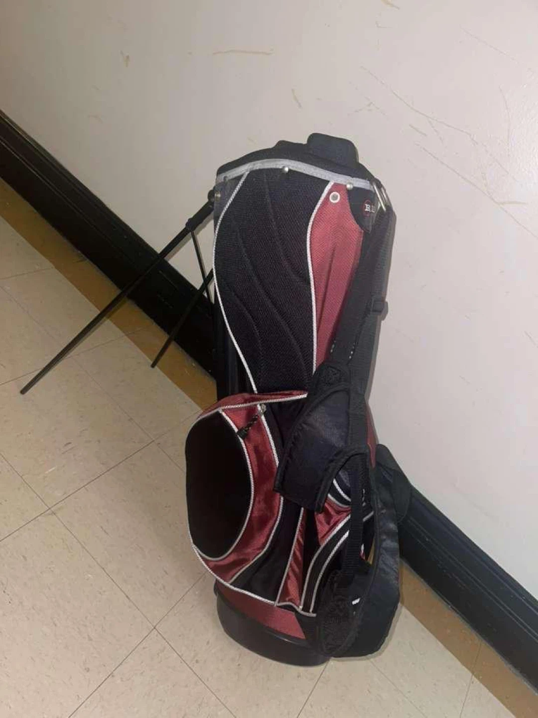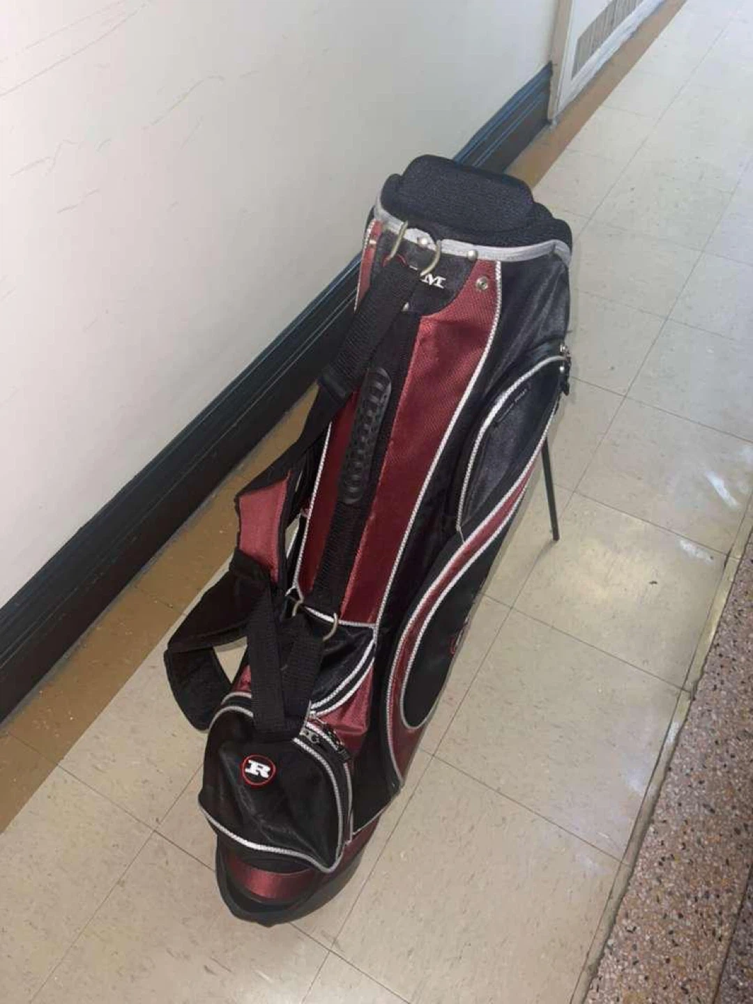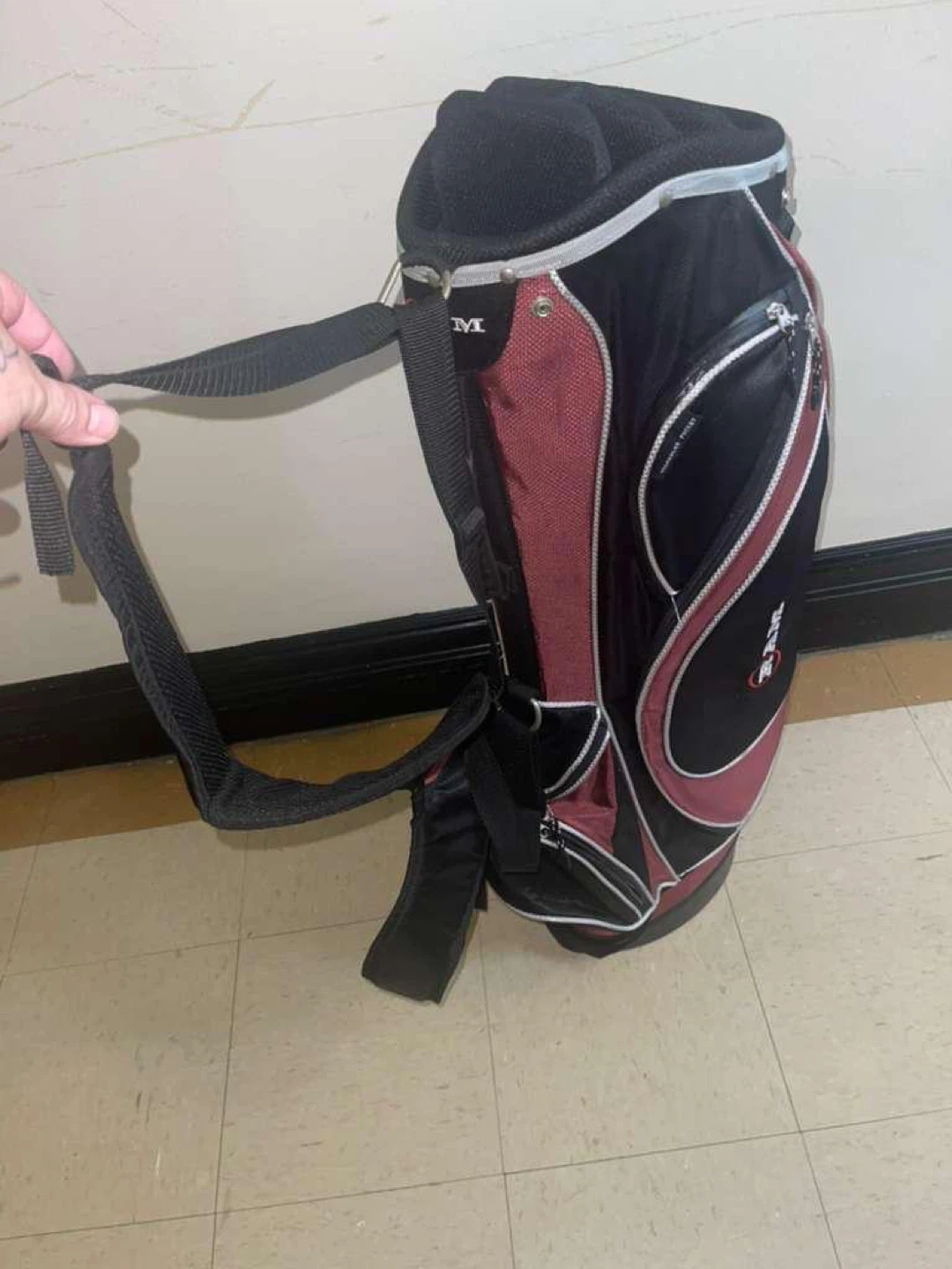 Ram Golf Carry Stand Bag, a type of golf bag designed for easy transportation and use on the course. with stand, and shoulder strap in excellent condition