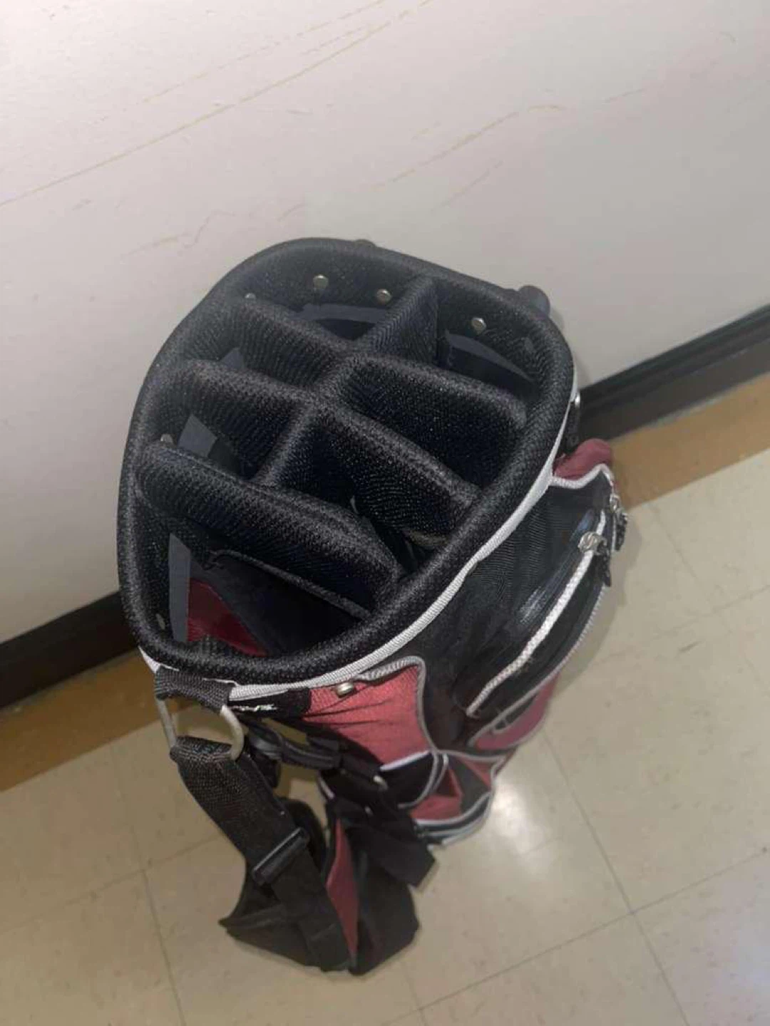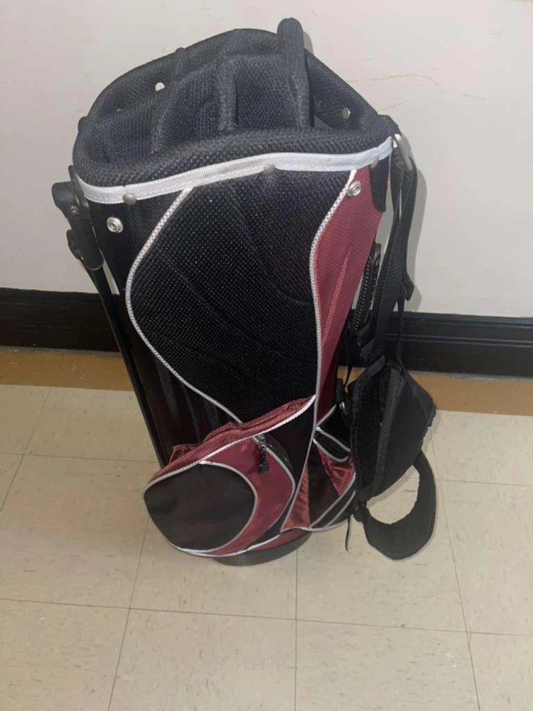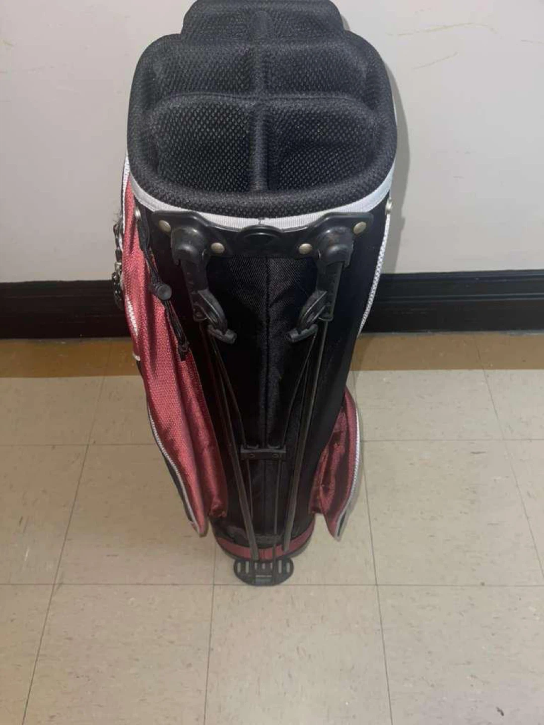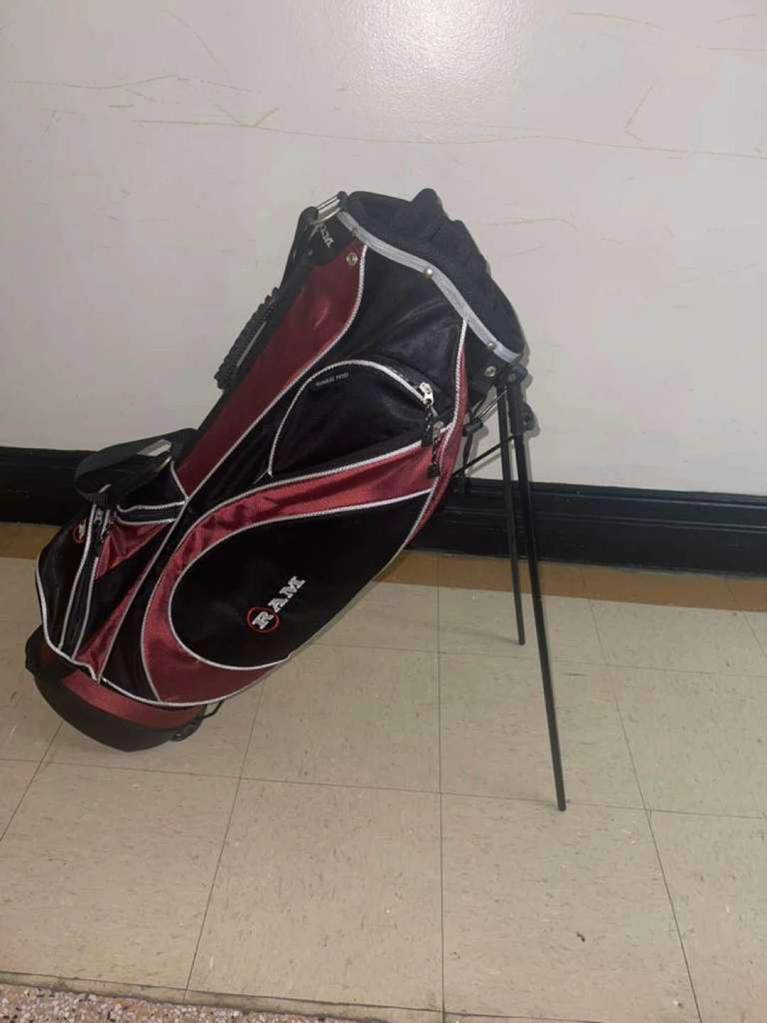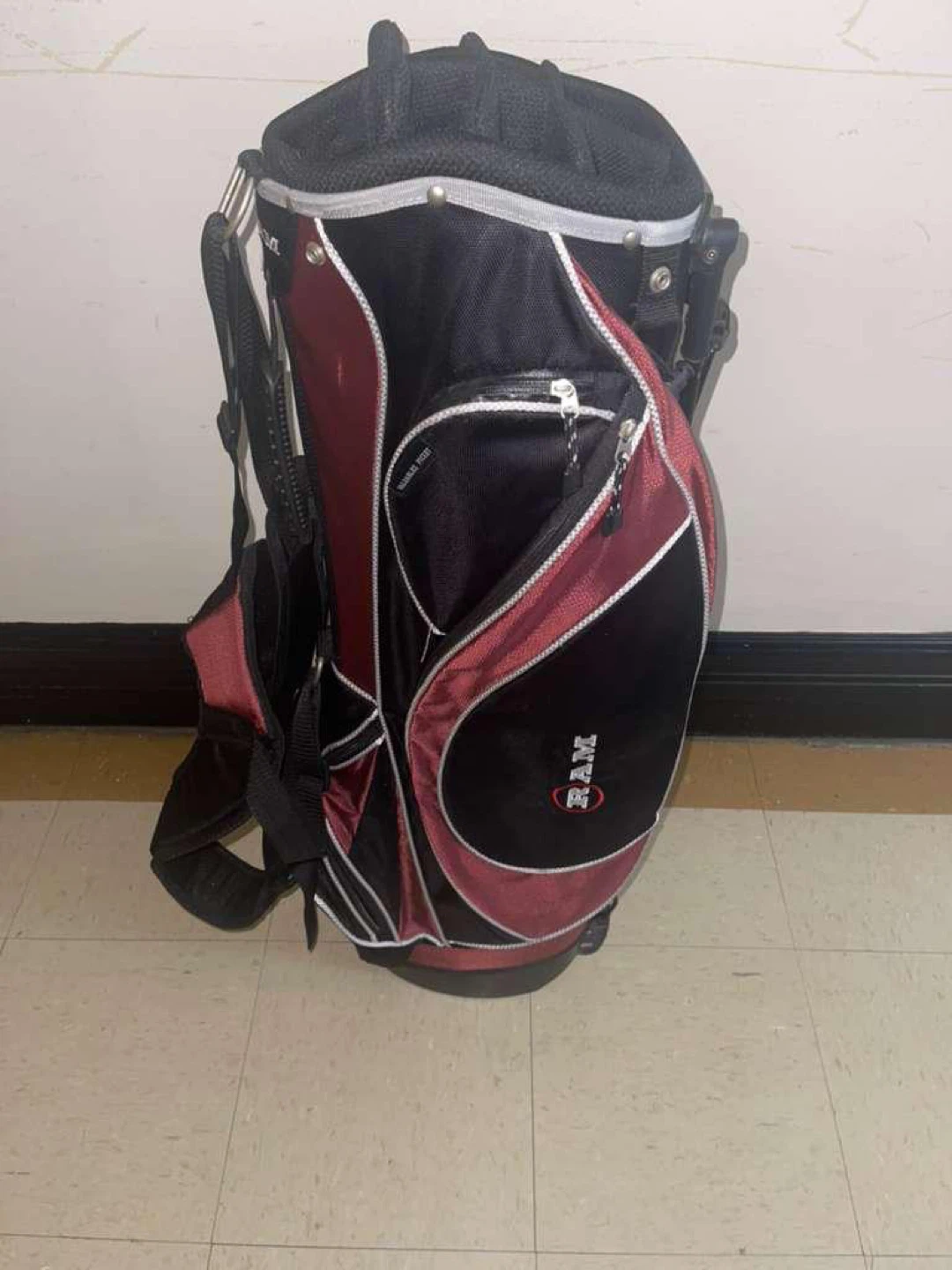 Ram Golf Carry Stand Bag, a type of golf bag designed for easy transportation and use on the course. with stand, and shoulder strap in excellent condition