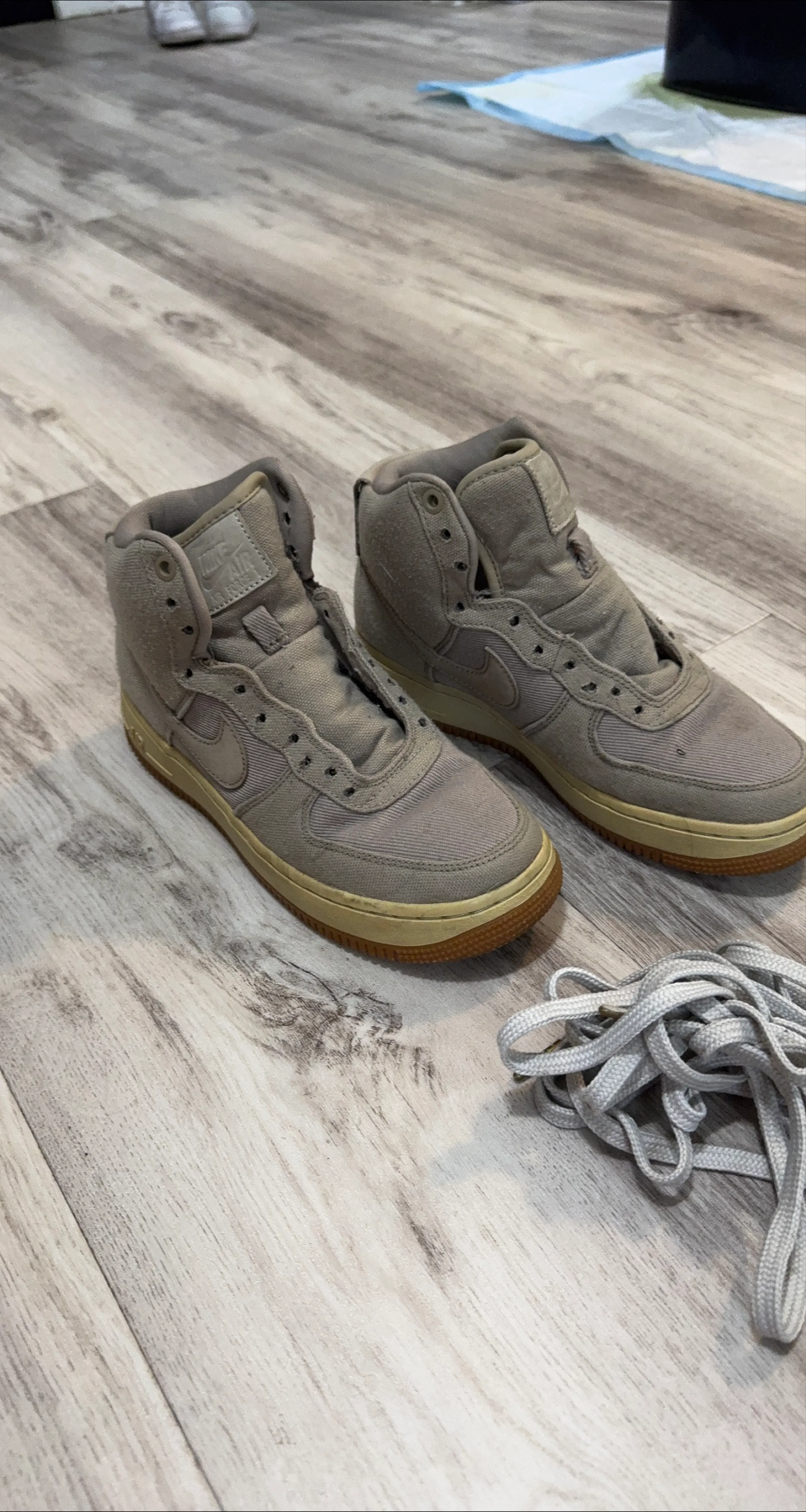 1 / 11 / 1Buy & SellNike Air Force 1 High Top SneakersNike Air Force 1 High Top Sneakers$40Gray canvas Nike Air Force 1 high top sneakers. Includes extra white laces. These shoes are pre-owned and show signs of wear.BrandNikeWHERE TO MEETCheck LocationView MapSELLERverifiedVanessaLogan Square711 review1 chats·0 favorites·32 viewsSEND CHAT TO SELLERHi Vanessa! I’m interested in your listing.Hi Vanessa! I’m interested in your listing.Get the Karrot app to chatSign In to chat