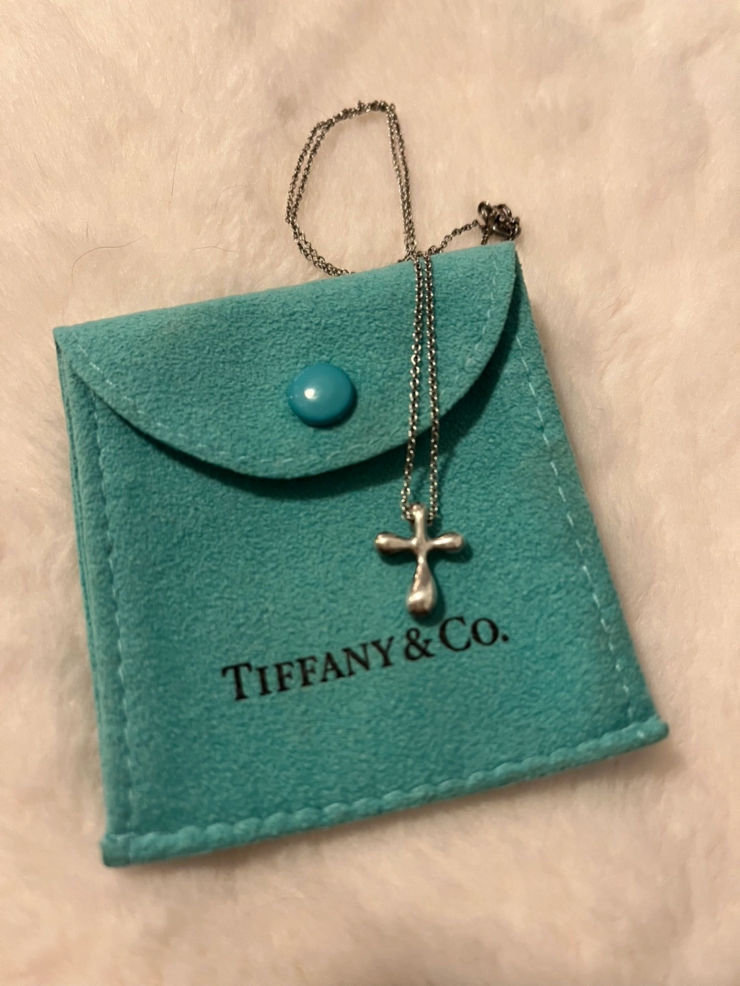 Authentic Tiffany & Co. Sterling silver cross necklace. Marked piece. Bag included.