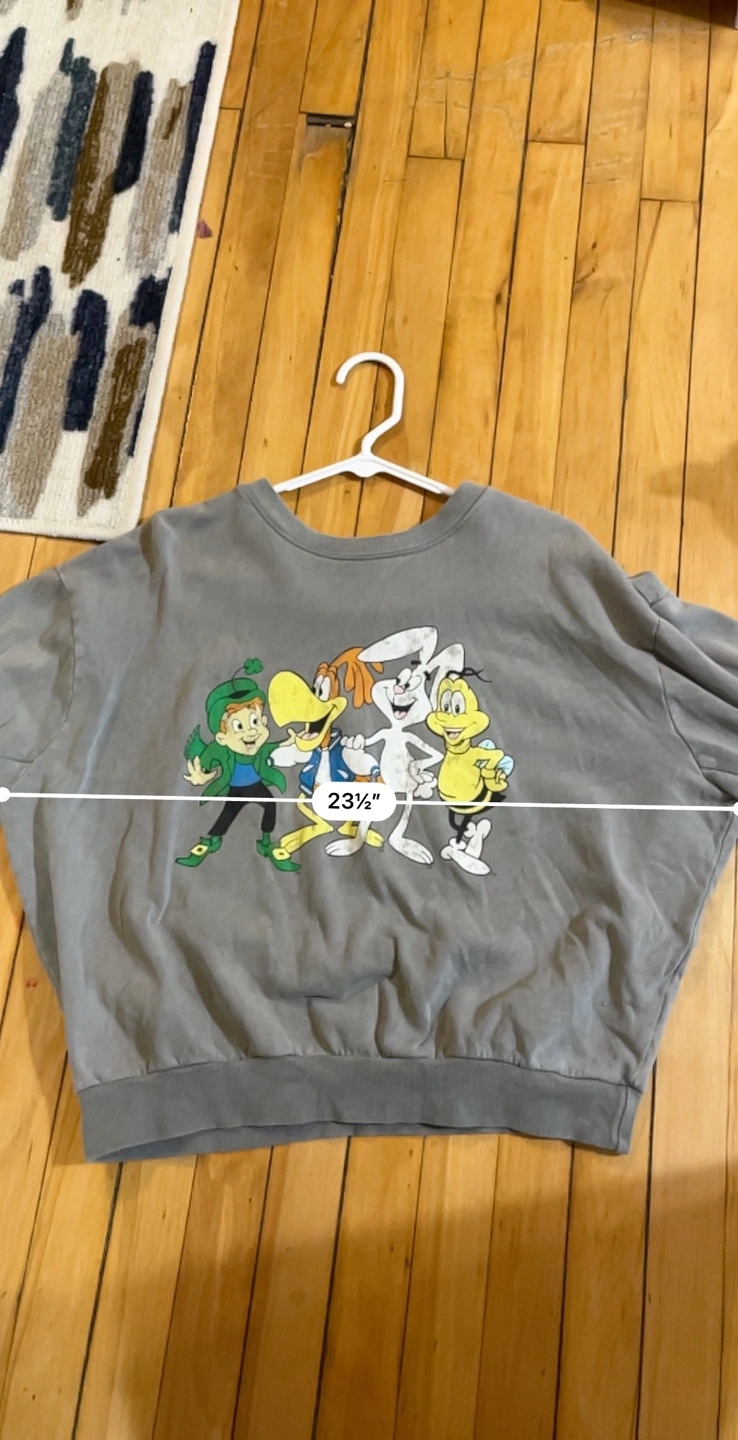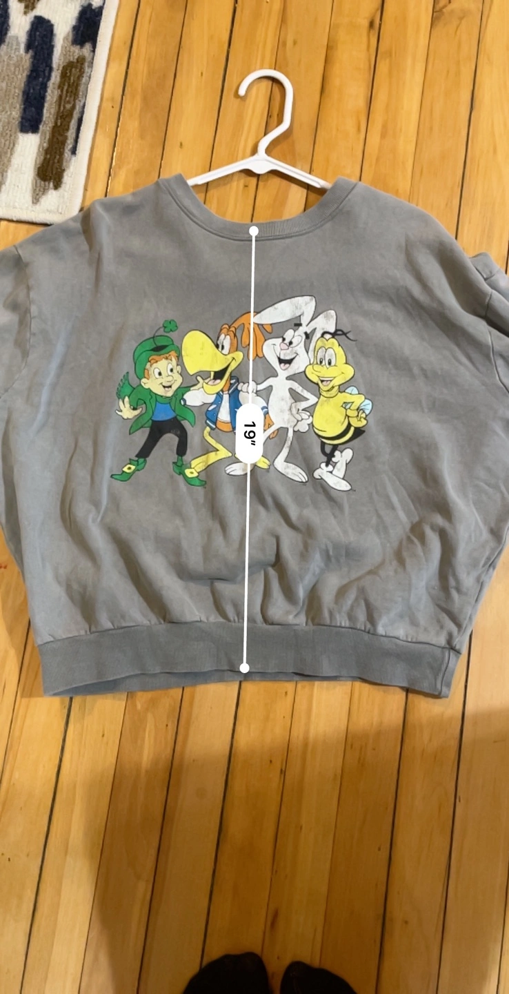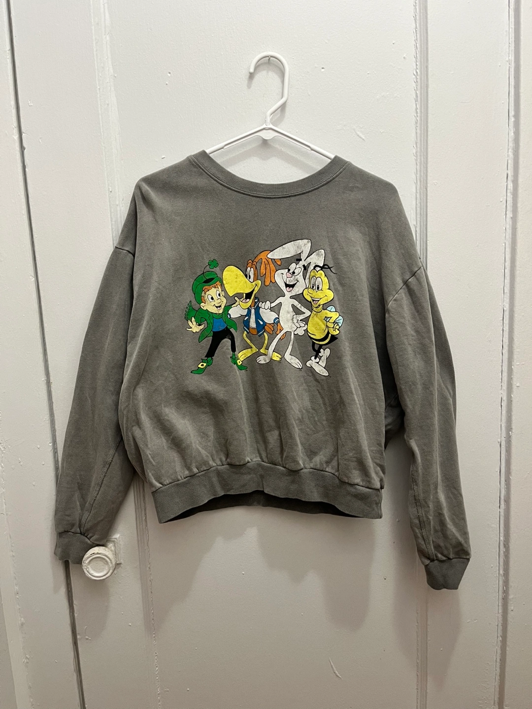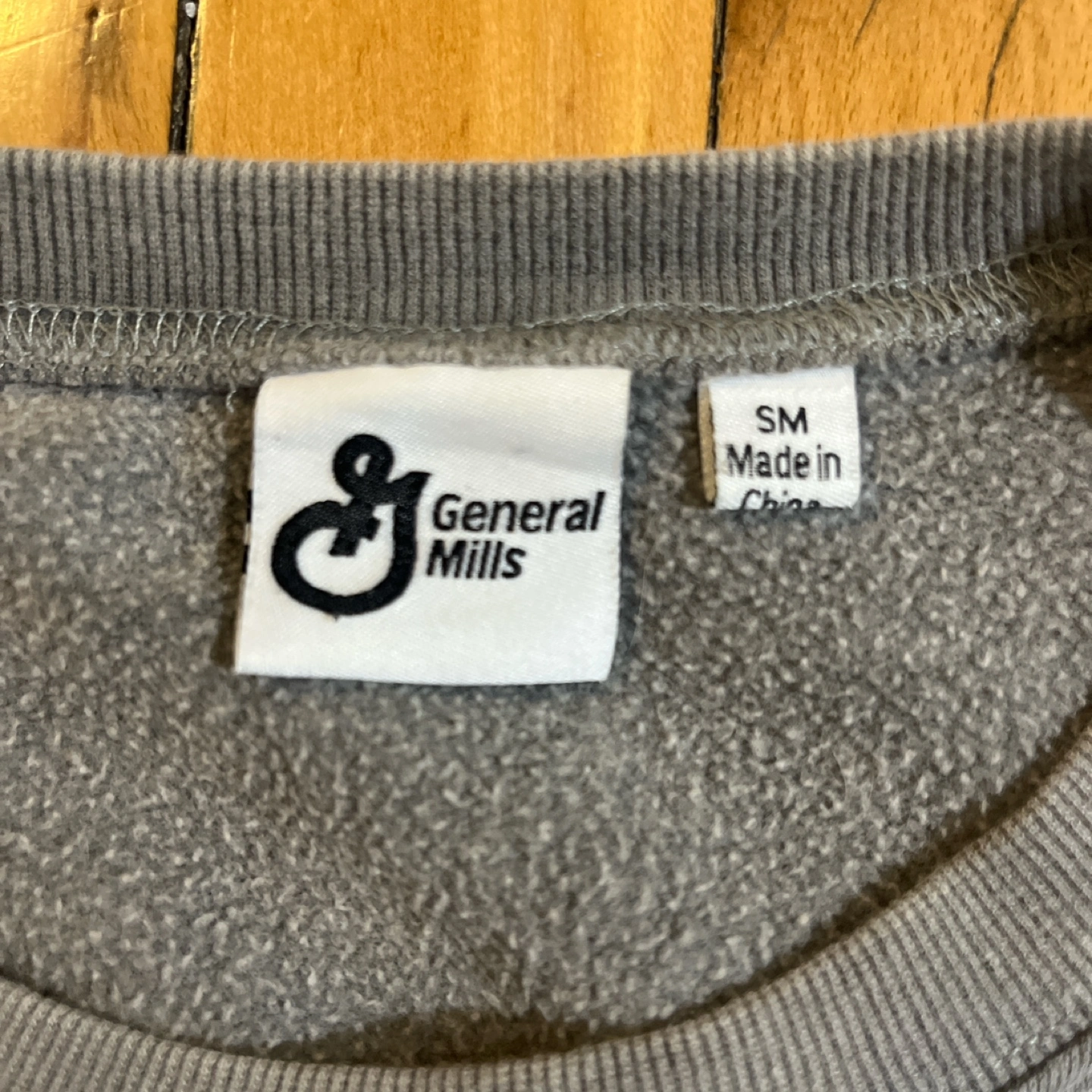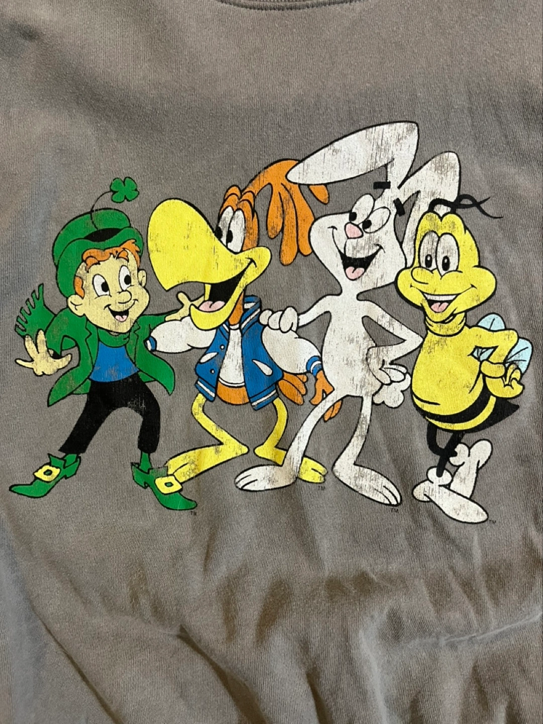 Gray crewneck sweatshirt. Features a vintage-style print of the General Mills cereal mascots Small size.