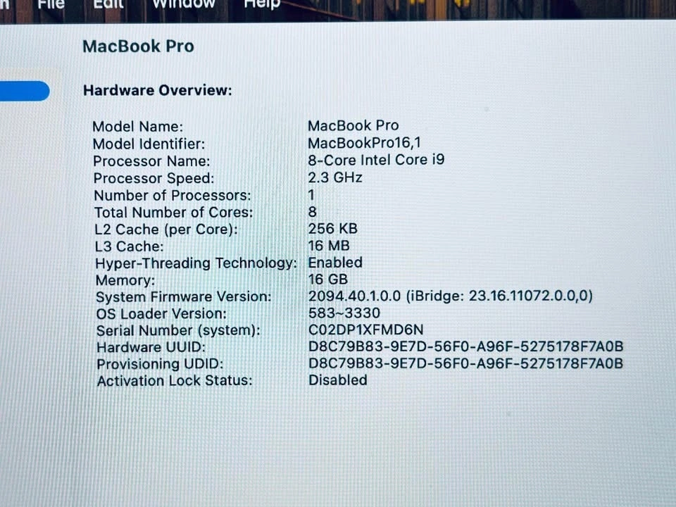 I am selling Apple Macbook Pro, 16β, 2019, Retina Display. I factory reset it, so it's like new, and all accounts and data is removed. It is fully functional. You can come and test it out, no issues. Itβs in Excellent Condition.