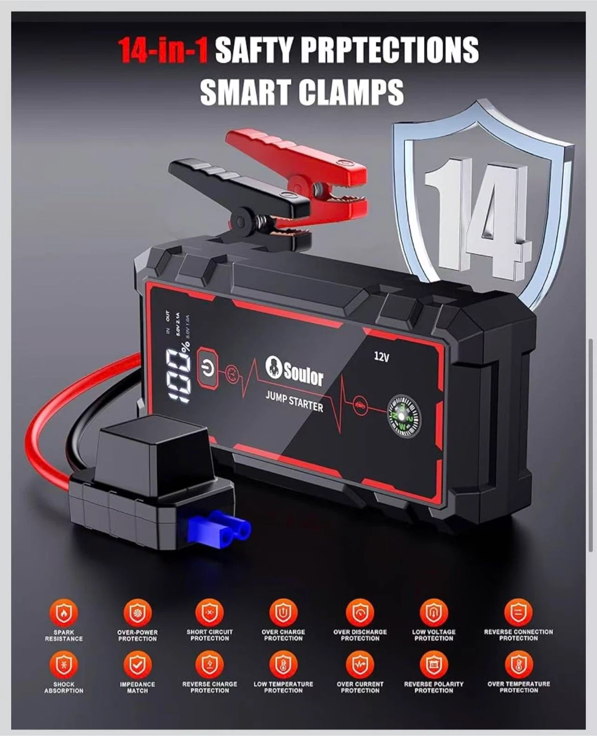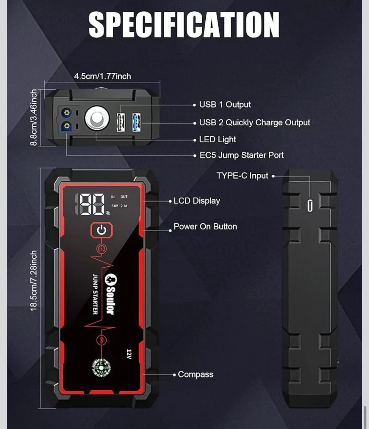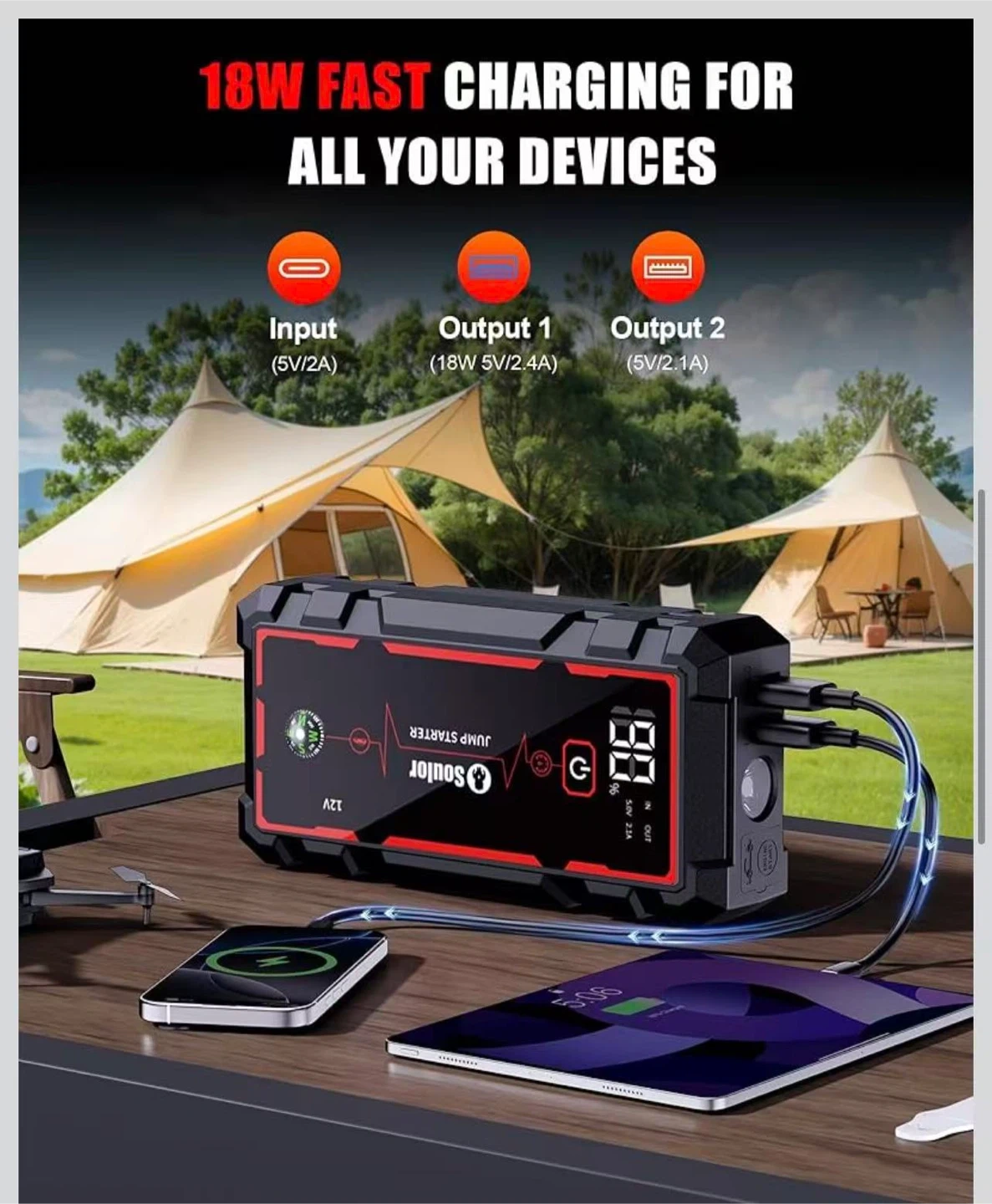 18W Fast Charging Portable Car Jump Starter