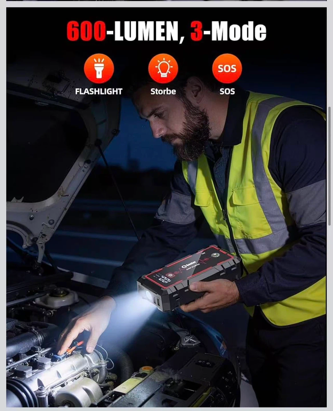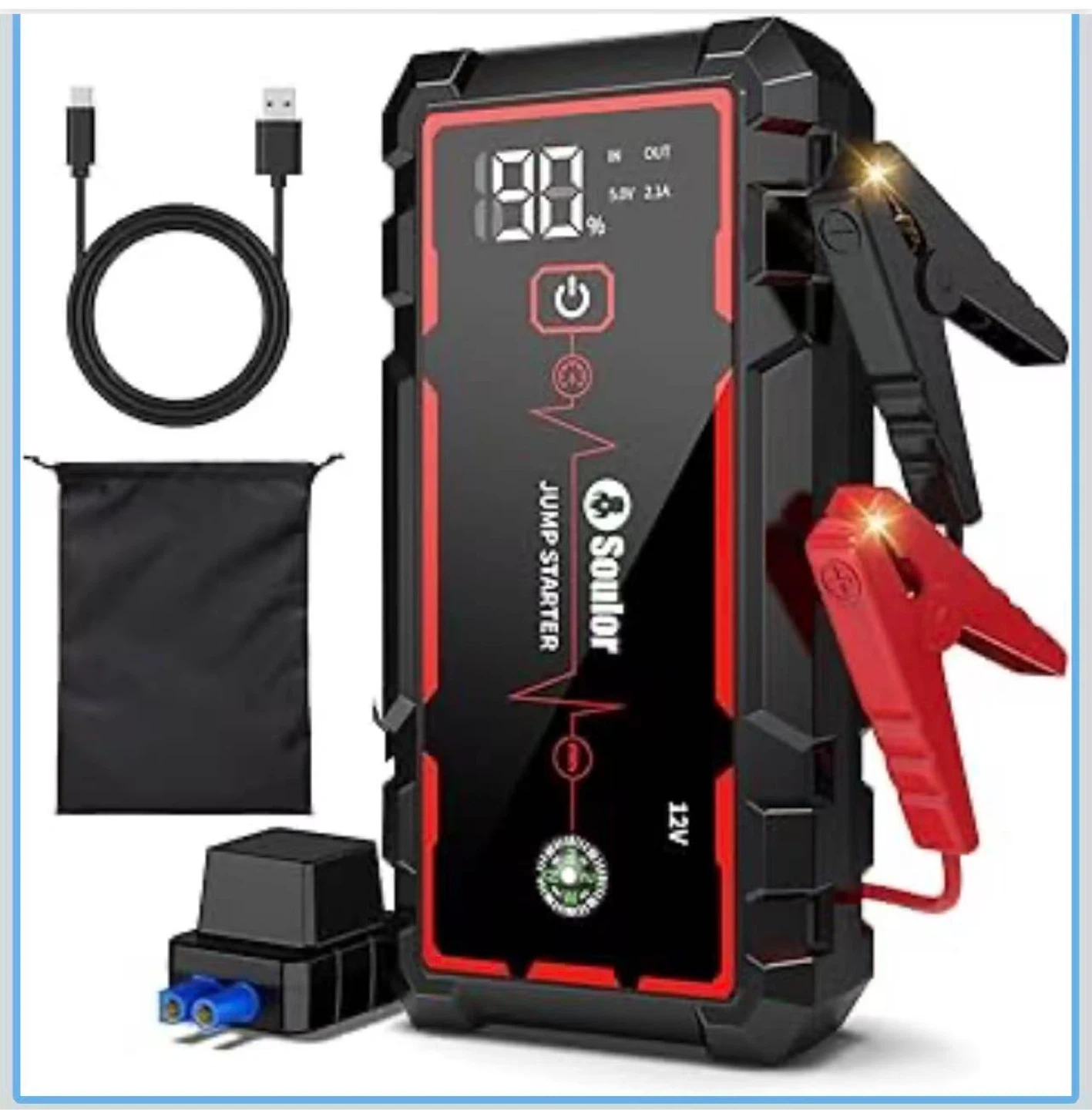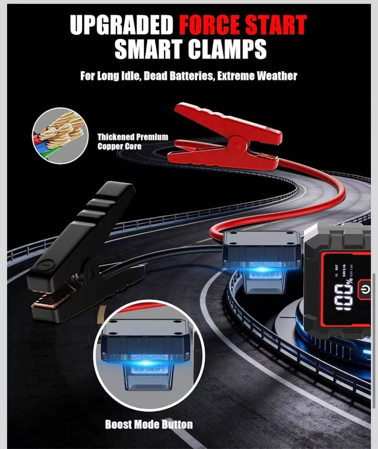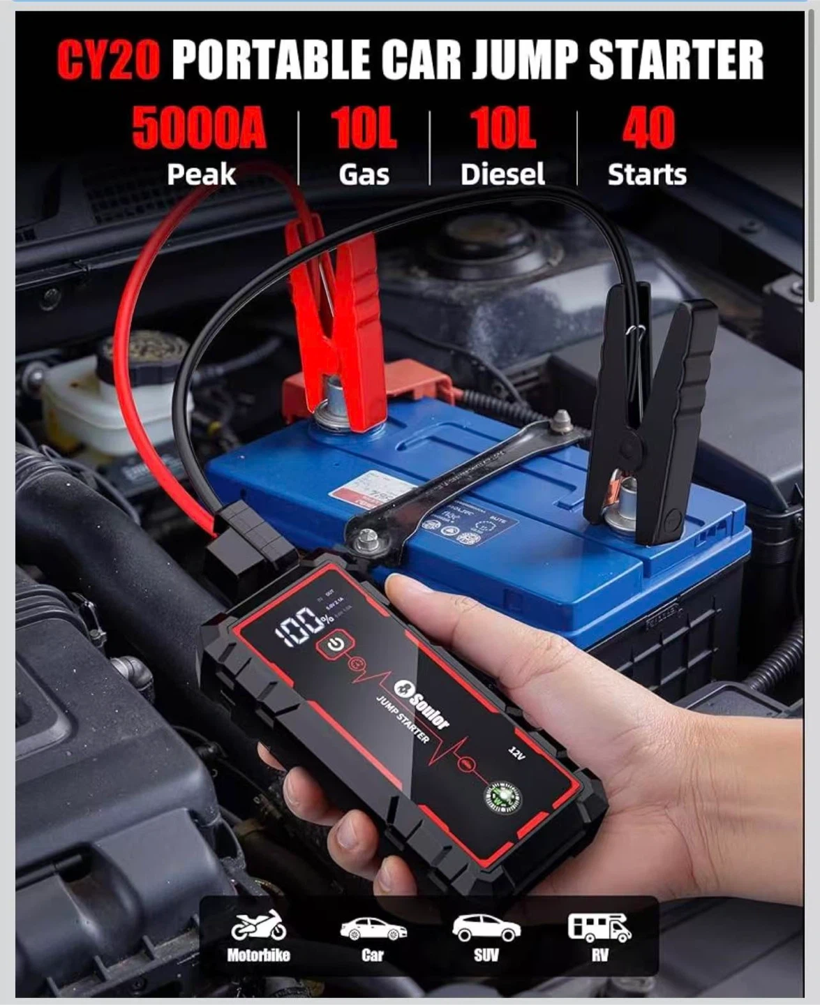 5000A Jump Starter Car Jumper Starter Portable Battery Booster Pack Jump Box with LED Display, LED Light and Jumper Cables(up to 10.0L Gasoline and 10.0L Diesel Engine)