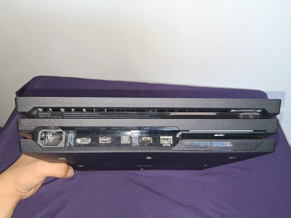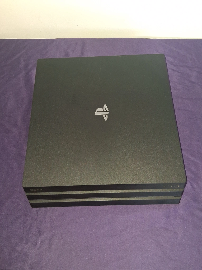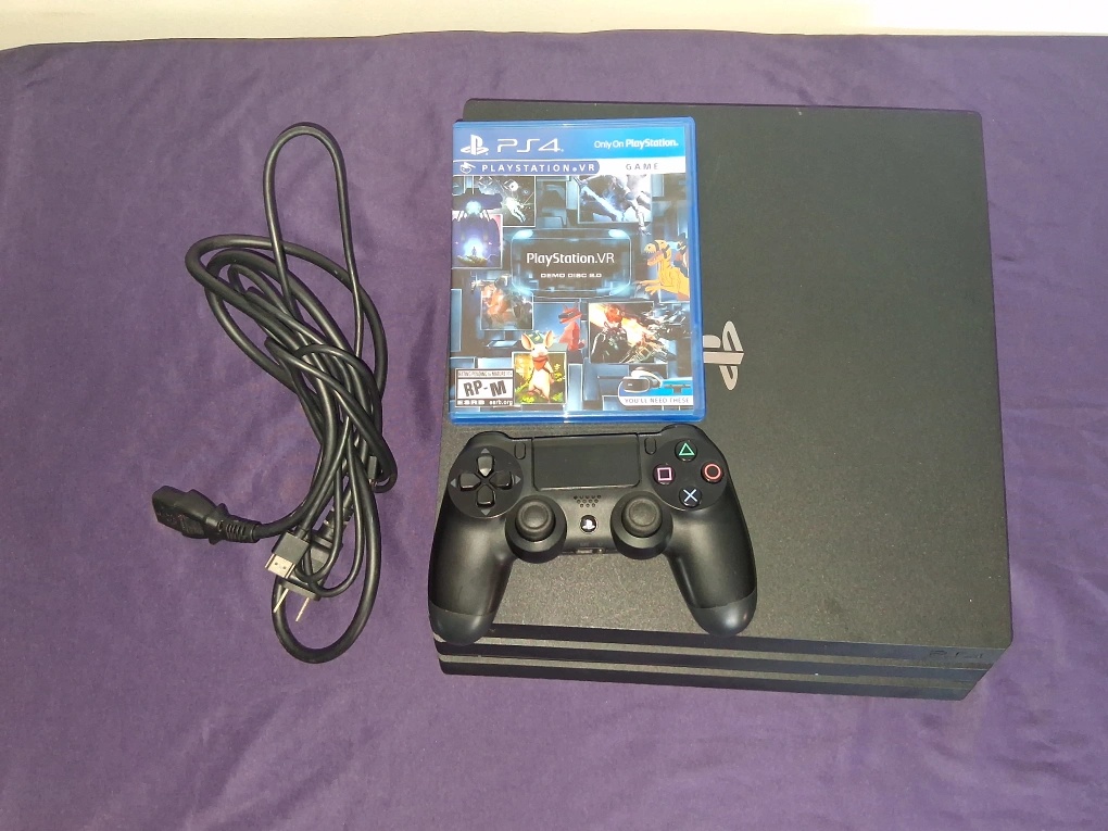 Selling a PlayStation 4 Pro console in good condition. Includes a controller and a game. Ready for some serious gaming fun!