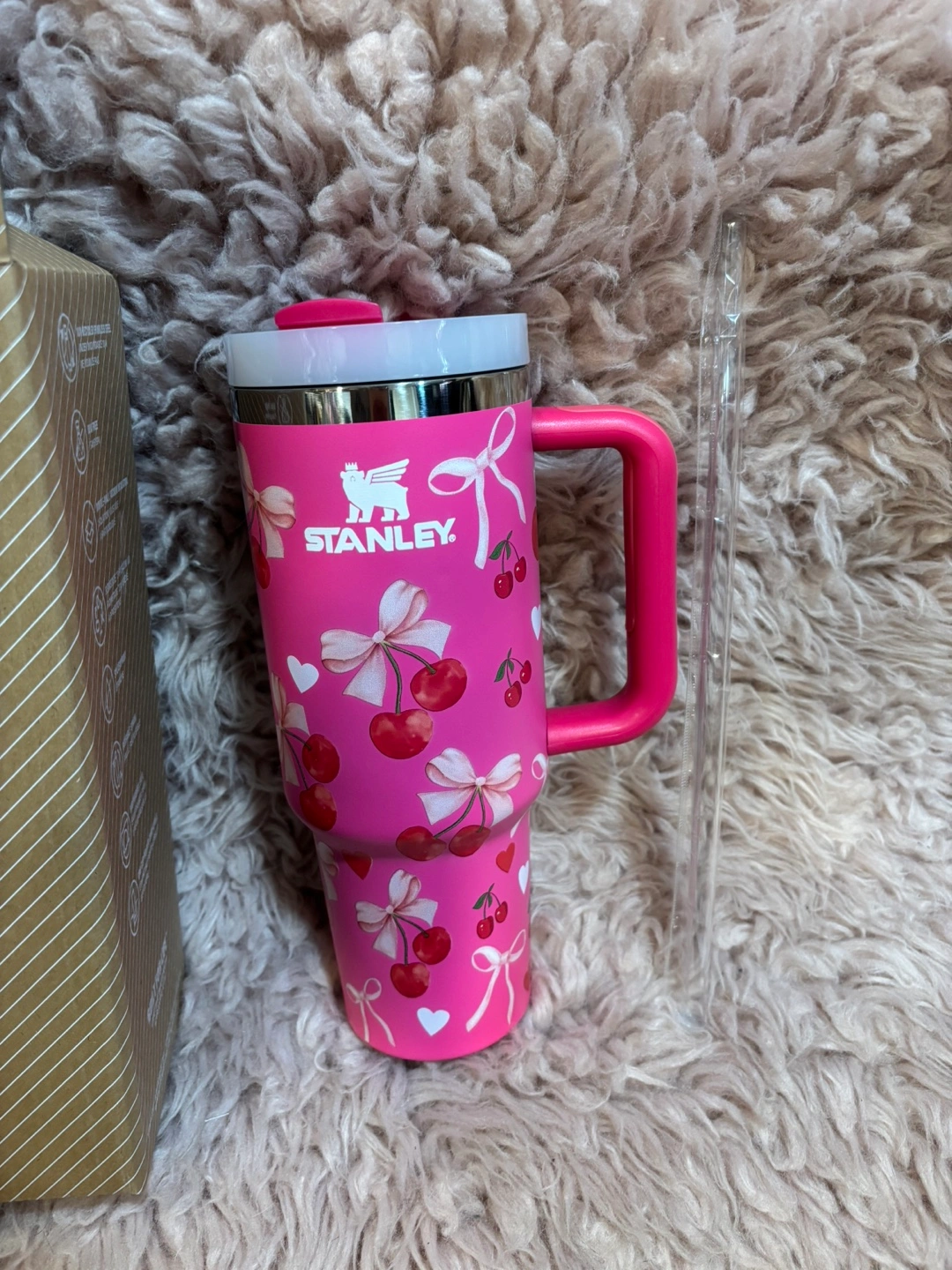 Selling a super cute pink Stanley The Quencher H2.0 Flowstate Tumbler! It holds 40 oz and comes with the original box and straw. It's perfect for keeping your drinks cold or hot on the go!