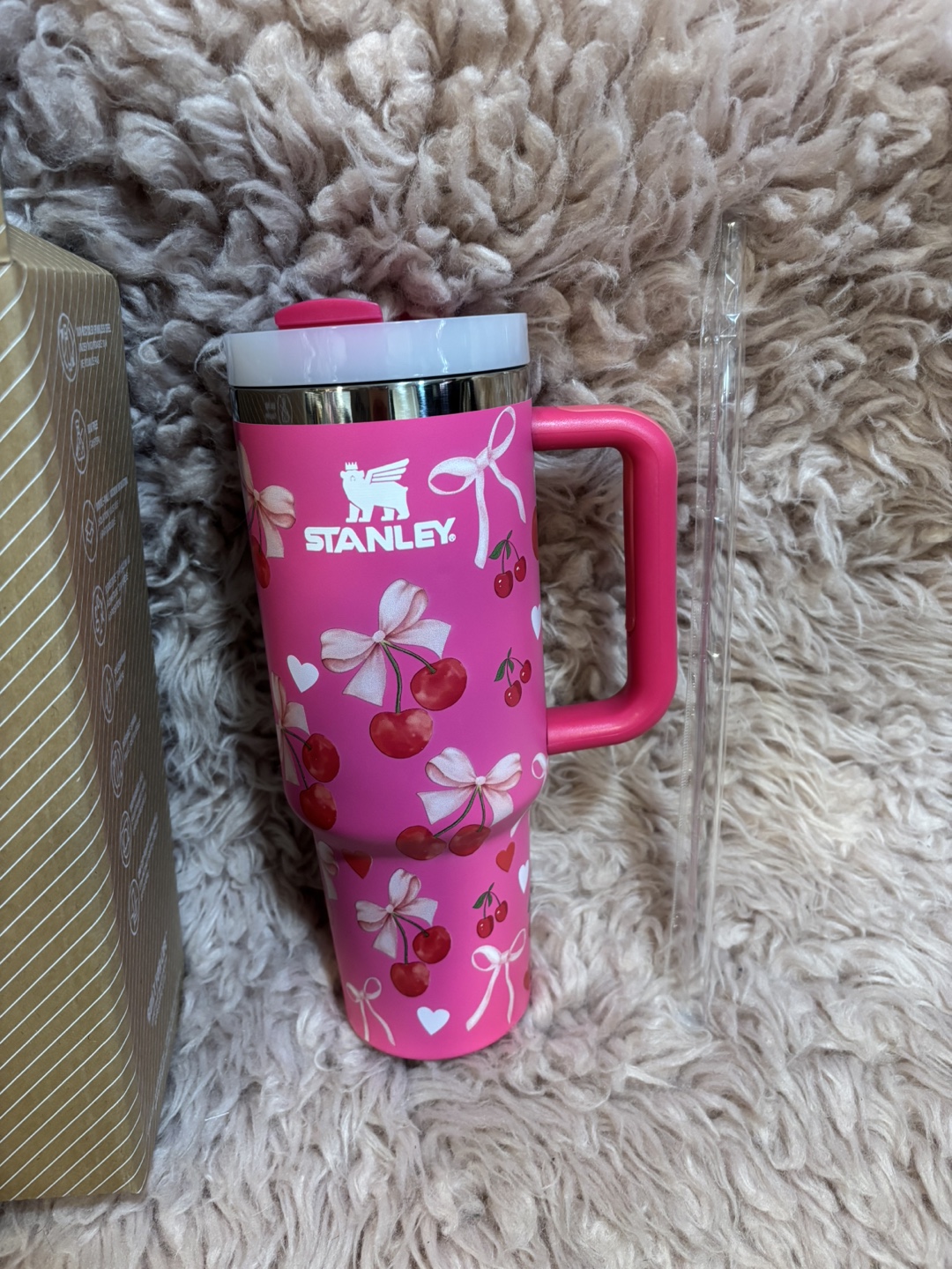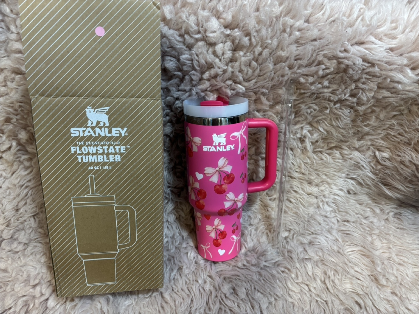 Selling a super cute pink Stanley The Quencher H2.0 Flowstate Tumbler! It holds 40 oz and comes with the original box and straw. It's perfect for keeping your drinks cold or hot on the go!