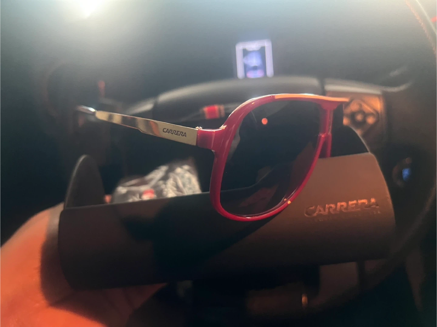 Selling a pair of Carrera sunglasses in red! They come with their original case and look great. The case is also included, so you can keep them protected when you're not wearing them