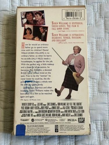 How far would an ordinary father go to spend more time with his children? Daniel Hillard (ROBIN WILLIAMS) is no ordinary father, so when he learns his ex-wife (SALLY FIELD) needs a housekeeper, he applies for the job. With the perfect wig, a little makeup and a dress for all occasions, he becomes Mrs. Doubtfire, a devoted British nanny who is hired on the spot. Free to be the "woman" he never knew he could be, the disguised Daniel creates a whole new life with his entire family. Outrageous, hilarious and often touching, Robin Williams makes this box-office hit a film to be watched again and again.