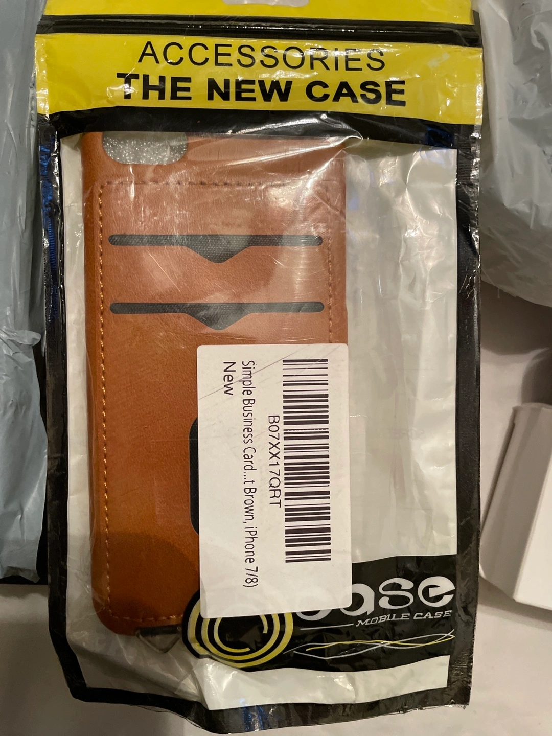 I'm selling a brand new mobile case for an iPhone 7/8! It's a simple business card case in brown. It features an ultra slim and custom fit design for easy operation. The case is made of durable and flexible material, smooth to the touch and scratch resistant