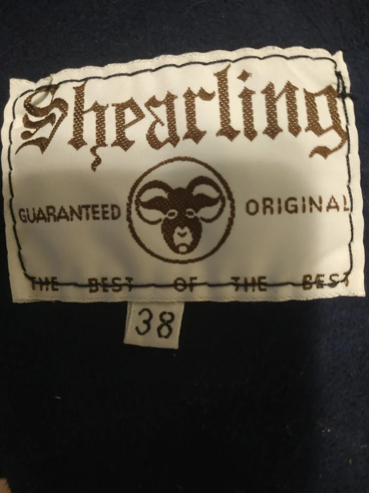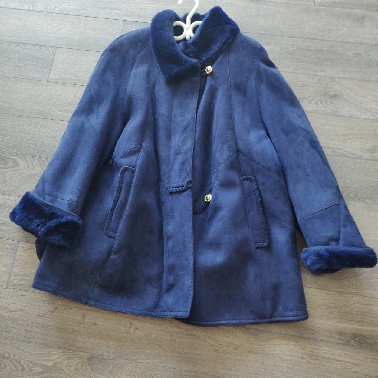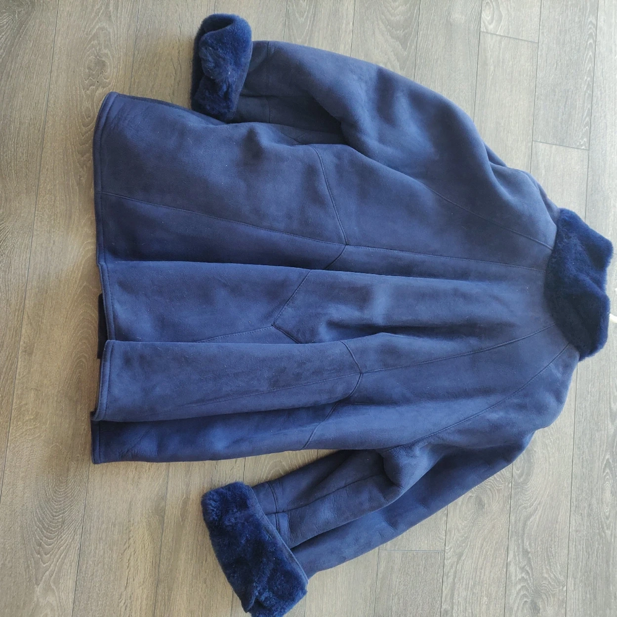 Blue shearling coat with a fur collar and cuffs. Size 38.
