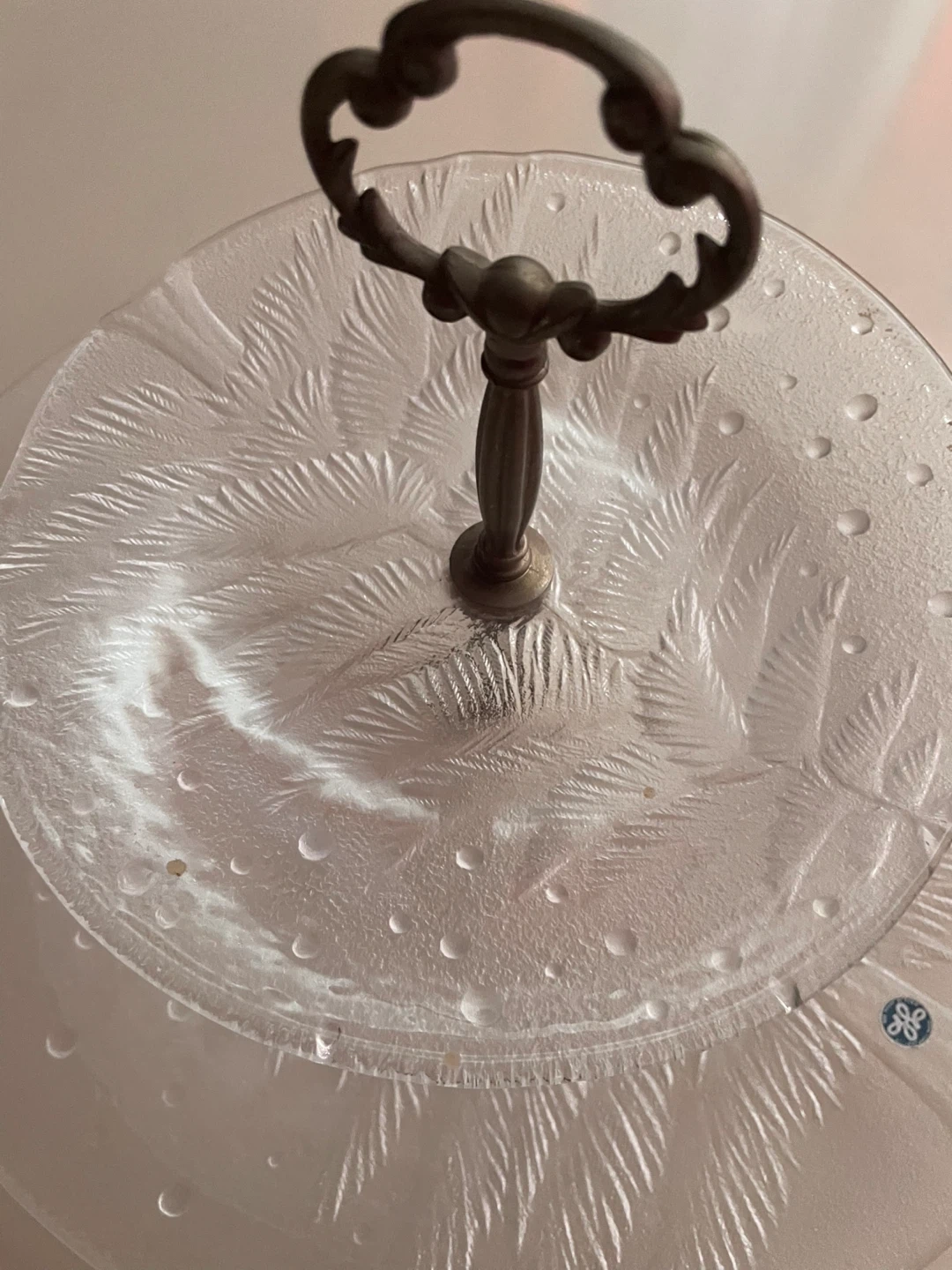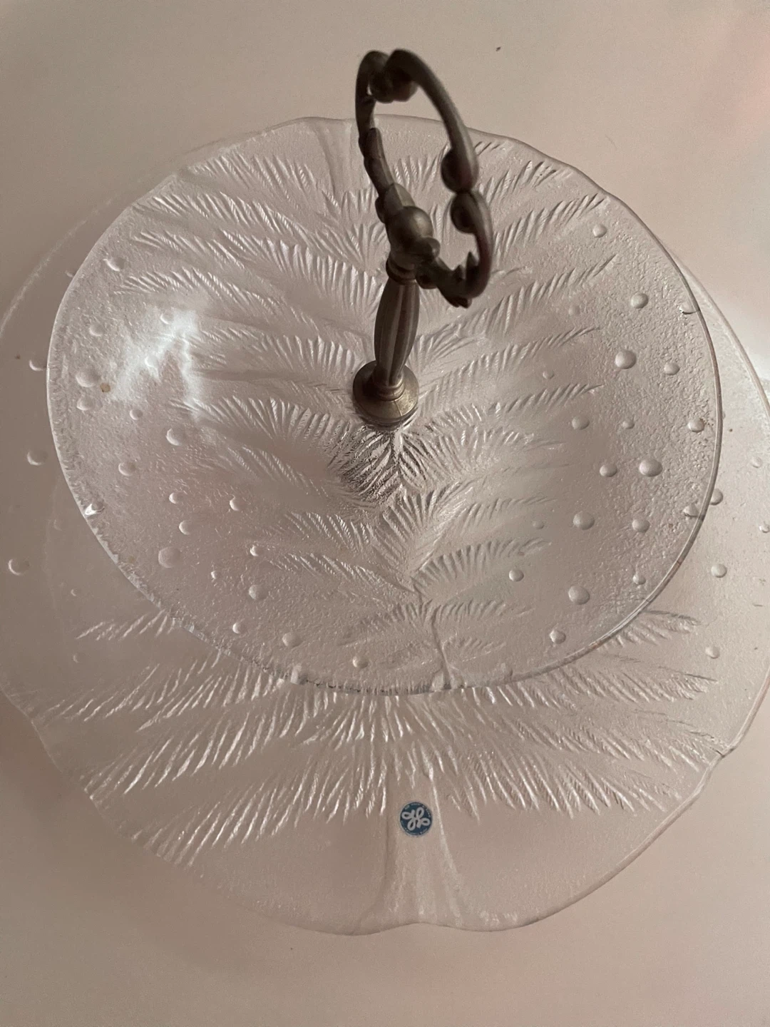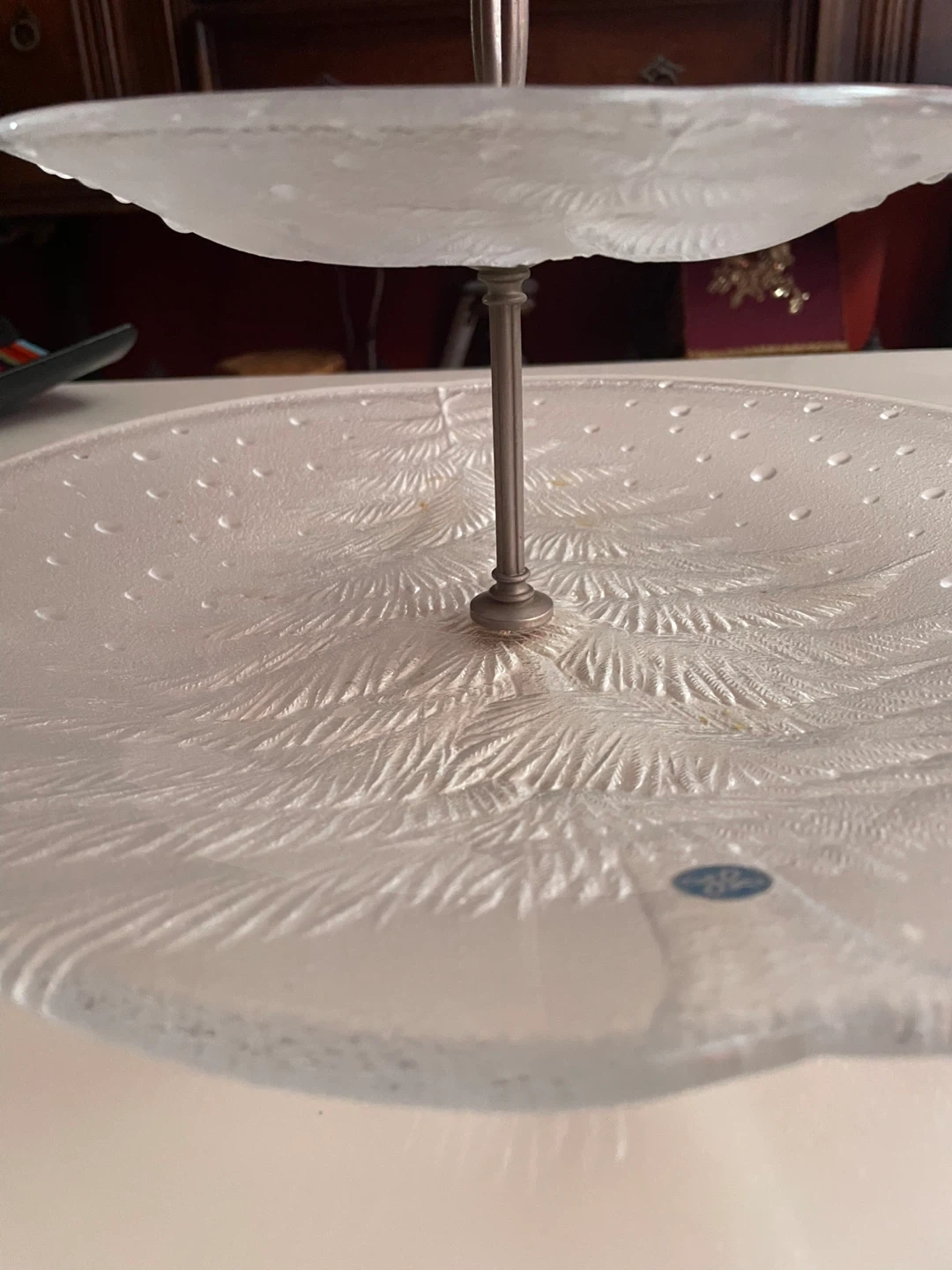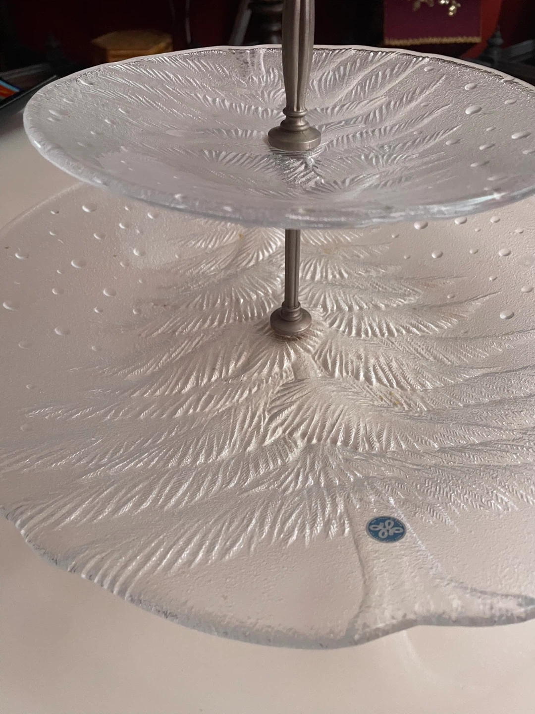 Selling a beautiful Mikasa glass two-tier serving platter! It's in great condition and features a lovely textured pattern. Perfect for displaying desserts or appetizers at your next gathering