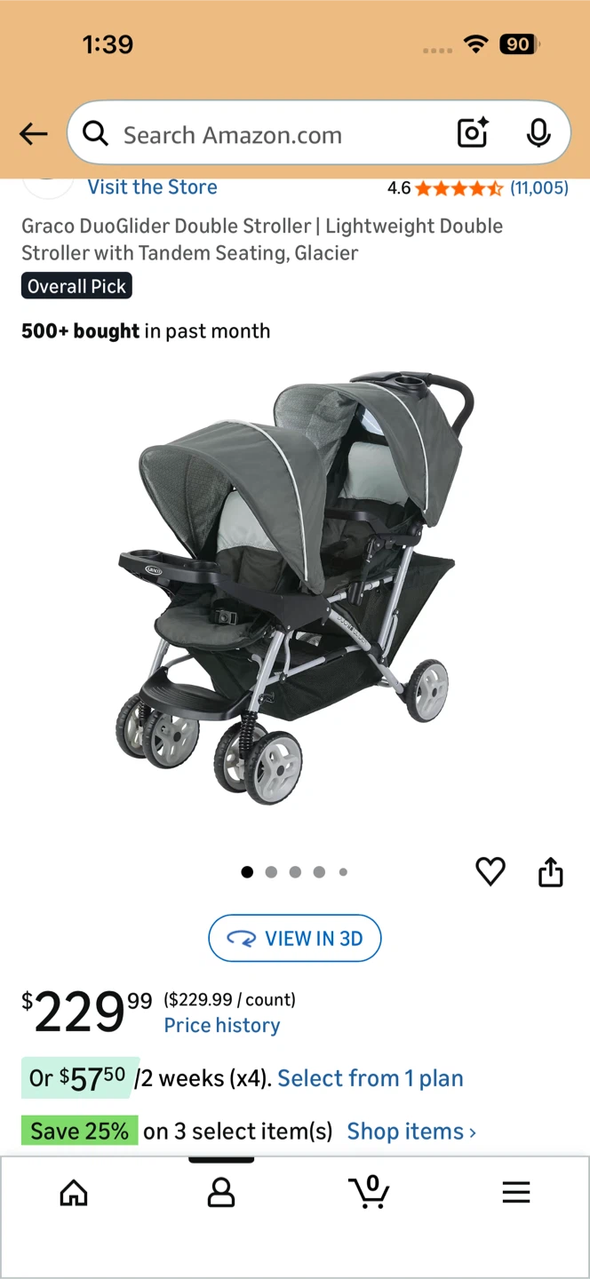 This Graco DuoGlider double stroller is designed for two, with tandem seating. It's lightweight and offers customizable configurations, including infant car seat carrier and toddler stroller options. Suitable for twins or children of different ages.