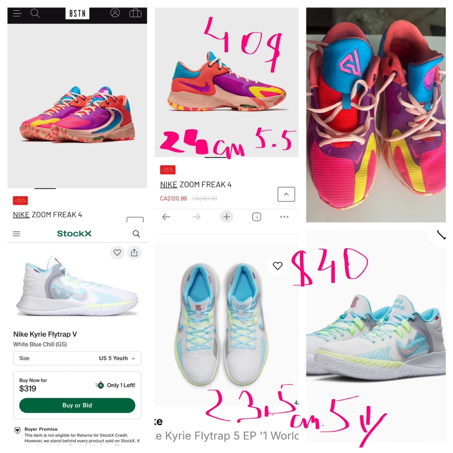 These are Nike Zoom Freak 4 basketball shoes. They come in a vibrant multicolor design. The size is 24 cm or 5.5.
