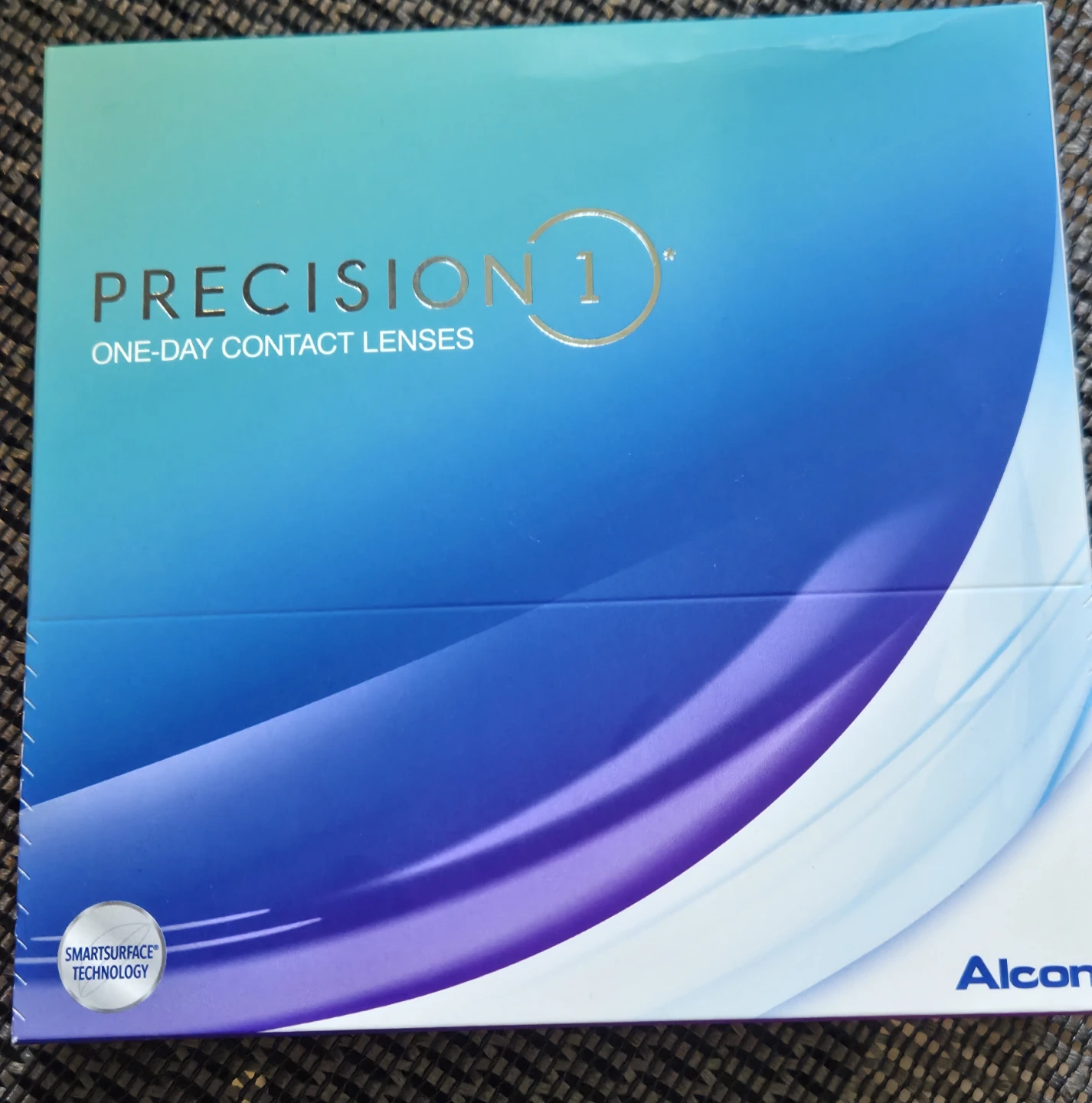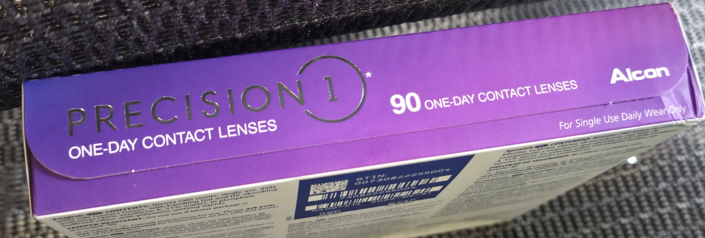 Brand new, unopened box of Alcon Precision 1 one-day contact lenses.