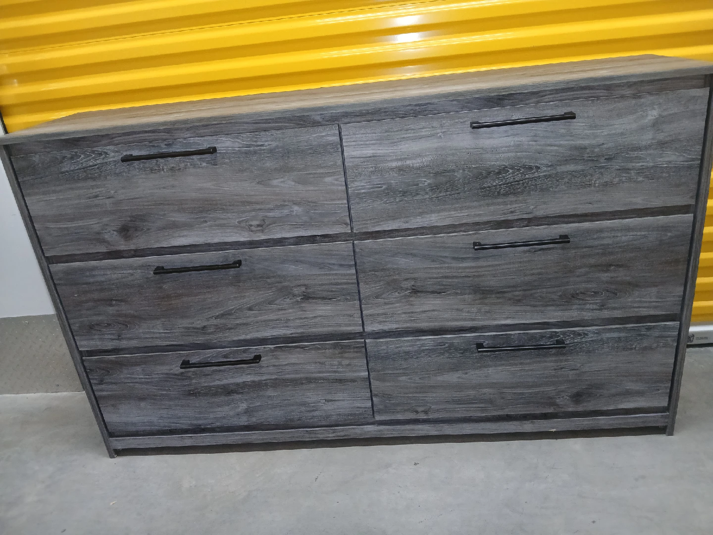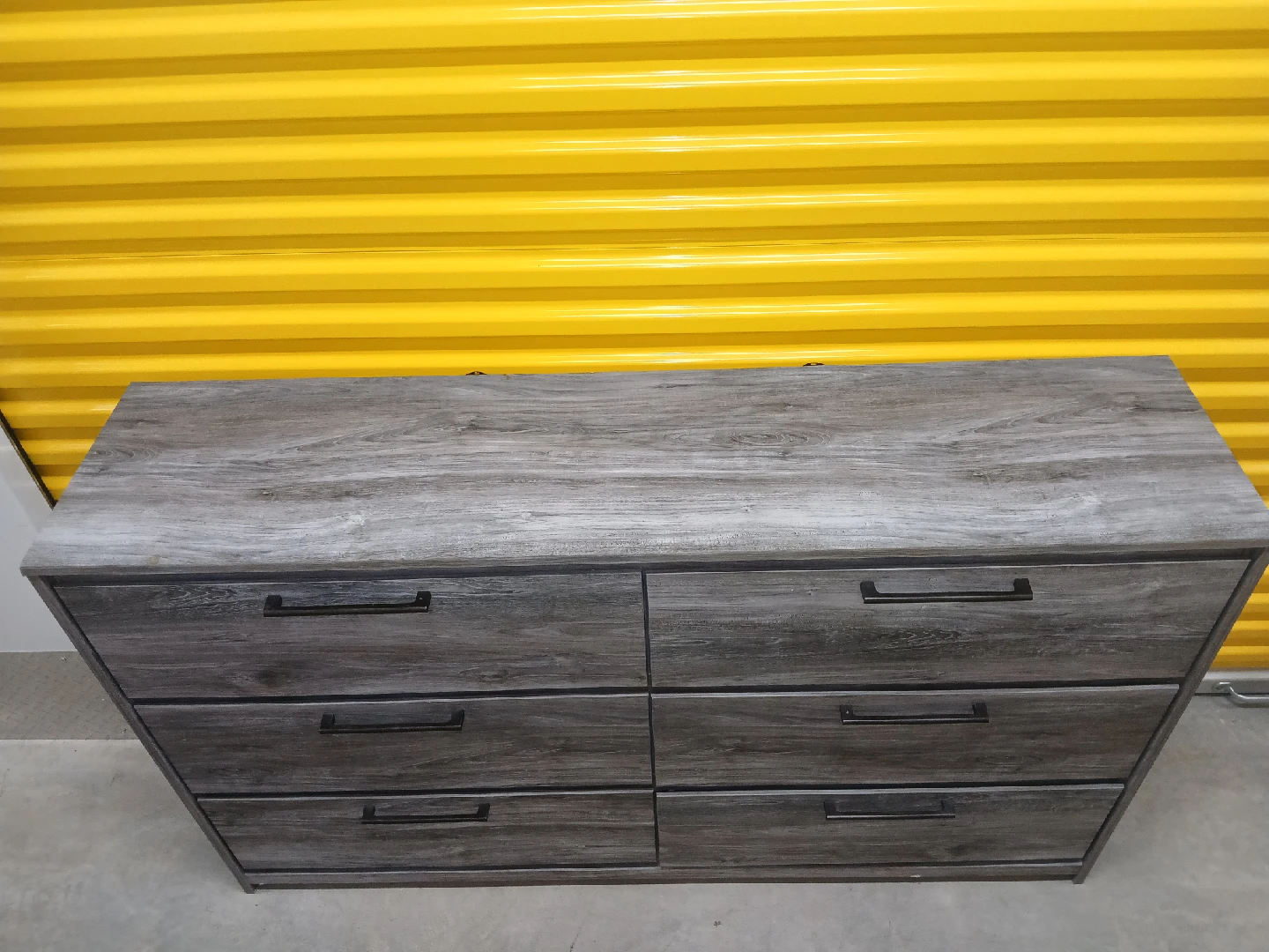 Here's an Ashley Furniture dresser with a gray wood finish! It has six drawers. Great for adding some storage to your space!