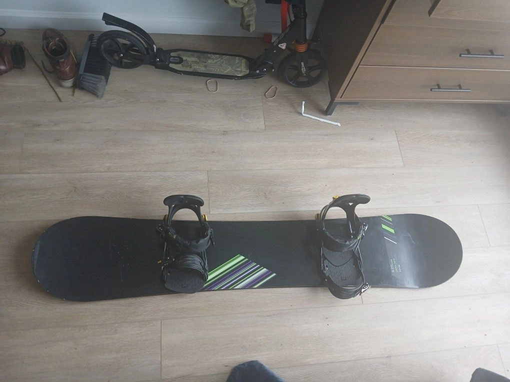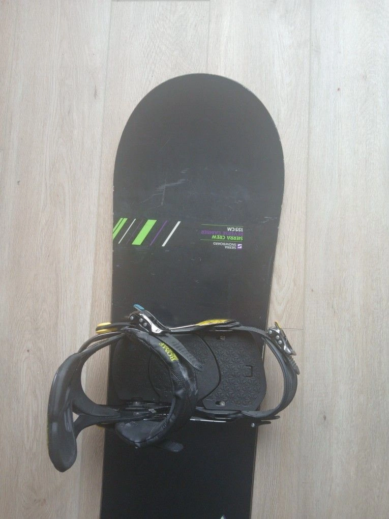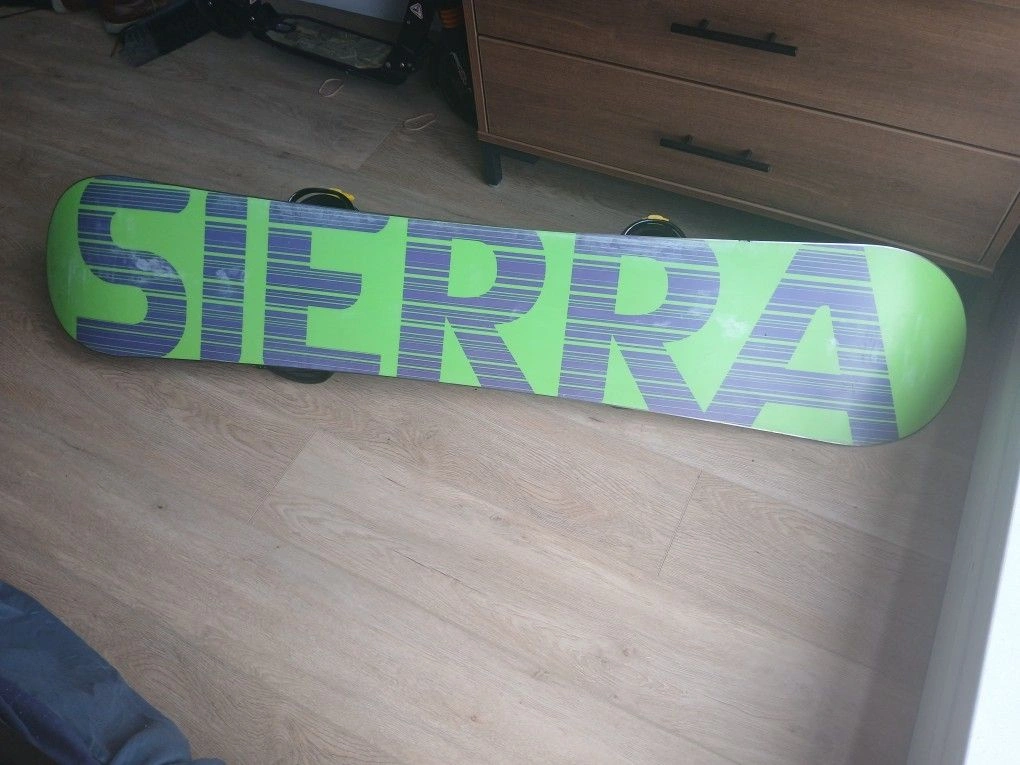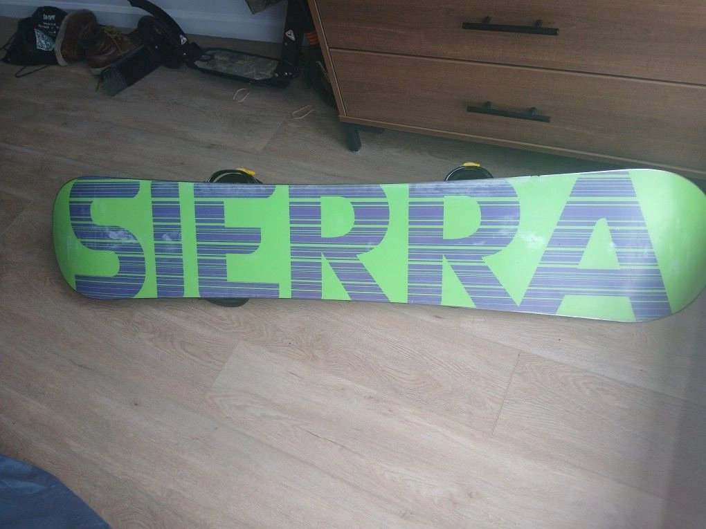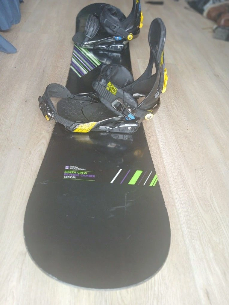Sierra Reverse Camber Snowboard 155Cm. for $180.00 firm. Complete with bindings and ready for the slopes. The board size is 155Cm. The board is used but it's in great condition.