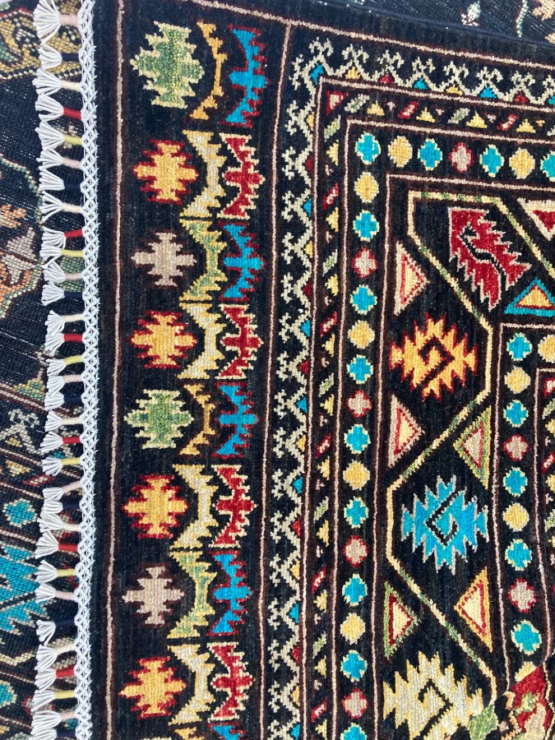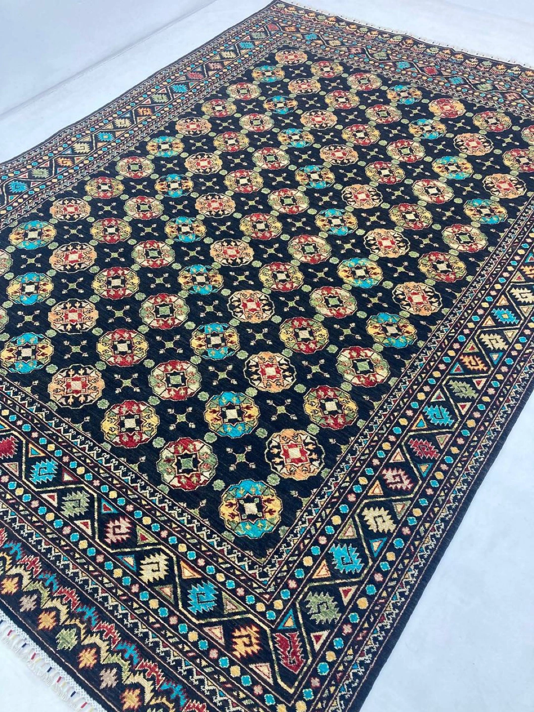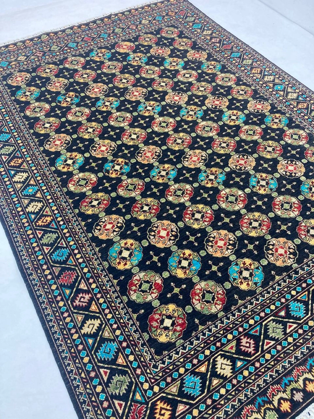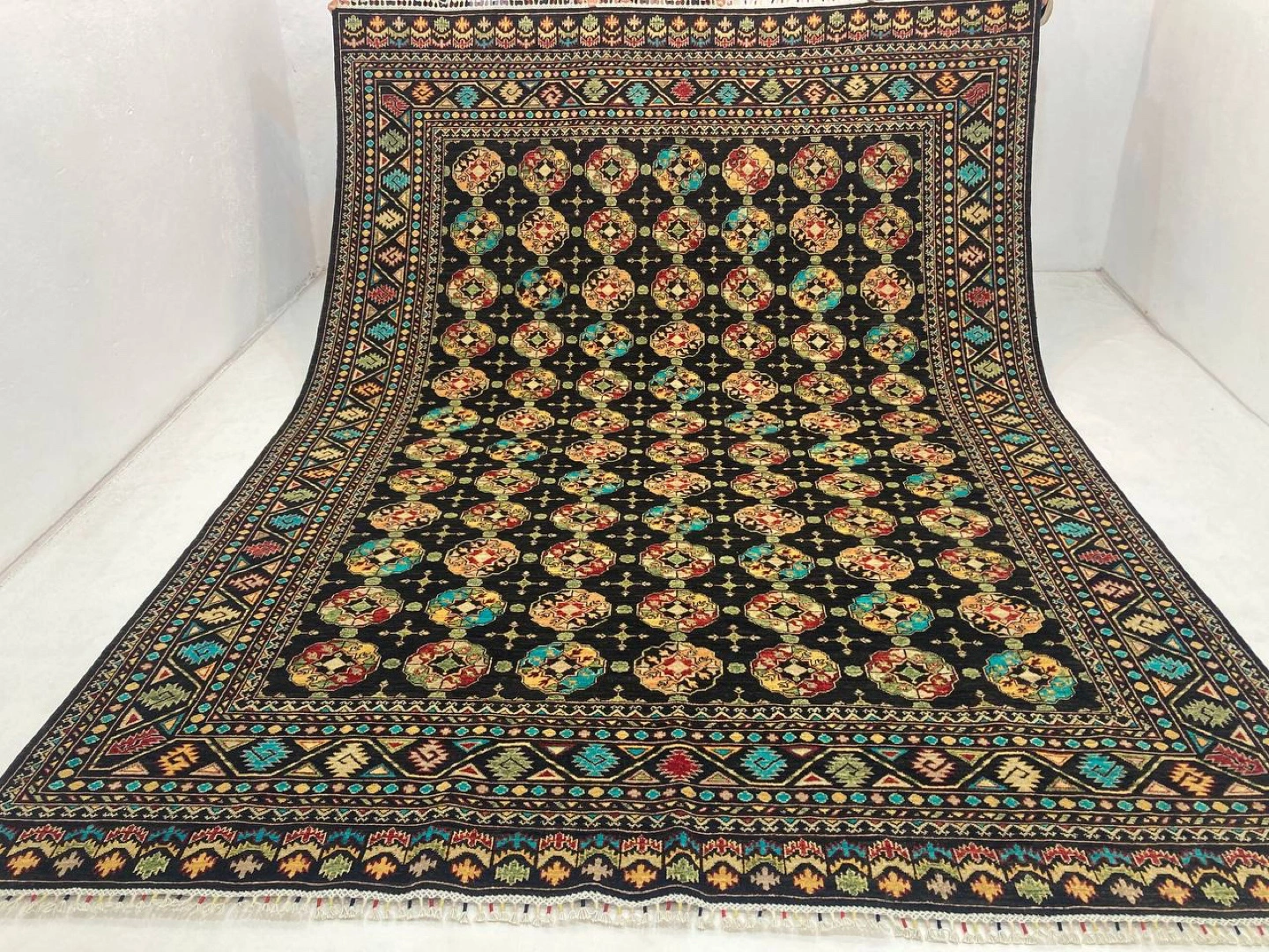 9x12 Ft Black Hight quality Chobi rugs, Best quality rugs , Modern waziri rugs Welcome to the heritageknots shop we provide best high quality rugs for your home decore 11x8 Ft Afghan High quality Chobi rug, Black waziri naqsha rug , One of kind rugs, New designs rug This rug is Hand Knotted from 100% Handspun wool by Turkmen artisans in northern part of Afghanistan in a village. It’s soft, full pile and all original with best Handspun Wool and vegetable dyed . Pictures are taken outdoor in natural daylight and you will receive exactly same rug. High quality Best price. Pile 100% Handspun Wool. Size in cm 250 x 350 Size in ft: 9✖️12 Age: New High quality Chobi rug Background Color : Black Condition: Excellent, full pile all original Pet and smoke free. Washed professionally and dried in the sun Country. Afghanistan. City: Aqcha Pattern: Turkmen