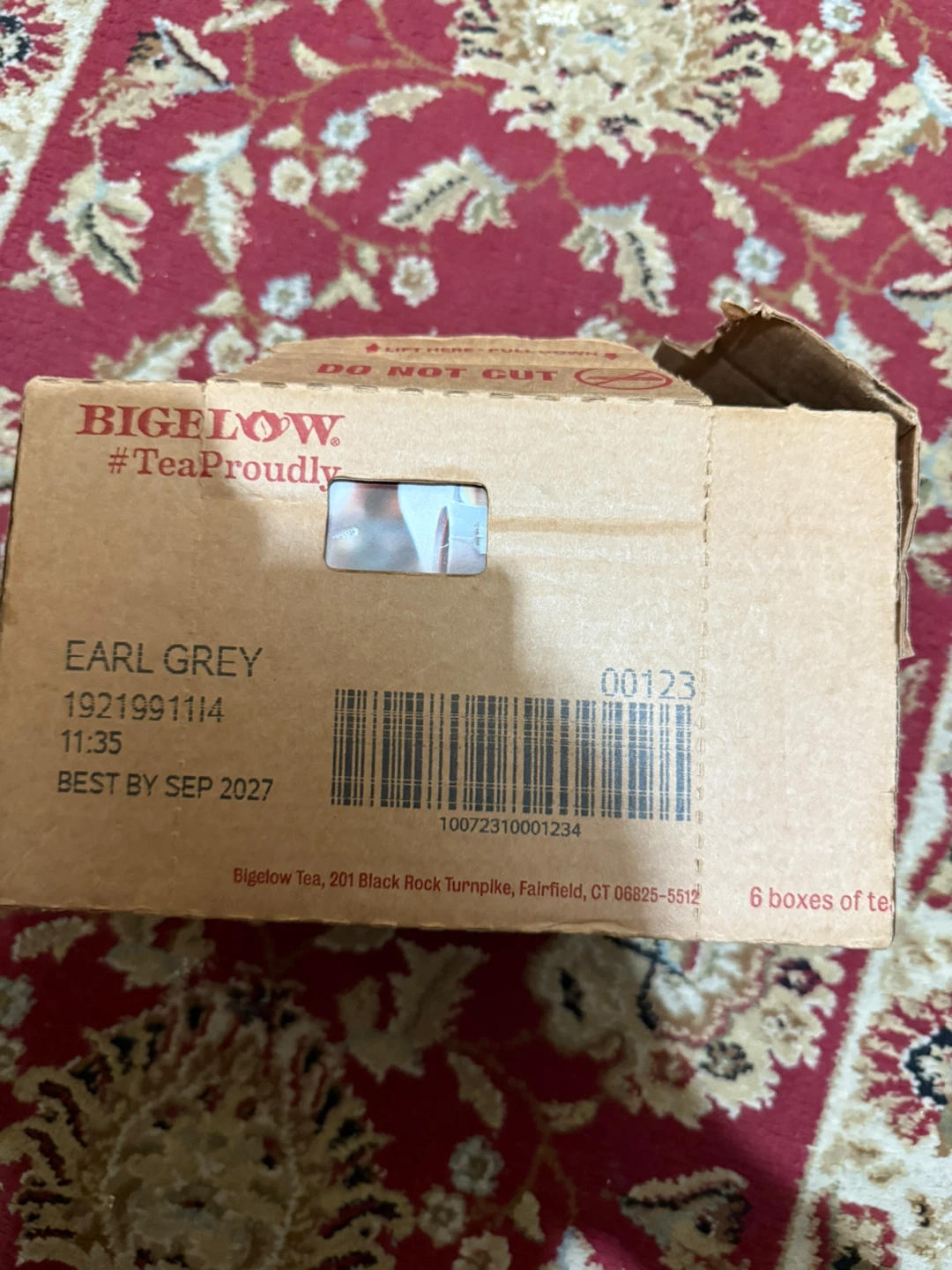 1 / 41 / 4Buy & SellBigelow Earl Grey Tea - 6 BoxesBigelow Earl Grey Tea - 6 Boxes$28Selling a box containing 6 boxes of Bigelow Earl Grey Tea. The best by date is September 2027.ConditionNewWHERE TO MEETCheck LocationView MapSELLERverifiedVitaliyBath Beach782 reviews0 chats·0 favorites·10 viewsSEND CHAT TO SELLERHi Vitaliy! I’m interested in your listing.Hi Vitaliy! I’m interested in your listing.Get the Karrot app to chatSign In to chat