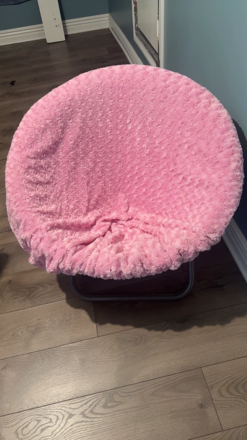 Selling a comfy pink papasan chair! It's in great condition and perfect for adding a cozy touch to any room. The chair features a soft, plush cushion and a sturdy metal frame. Great for relaxing or reading a book!