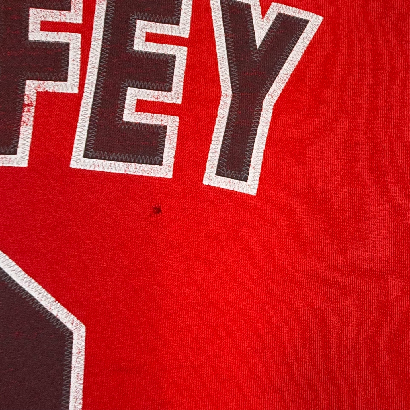 In good preowned condition. Men’s XL. Lettering has some wear. Has Tiny hole on back of shirt (See Pics).