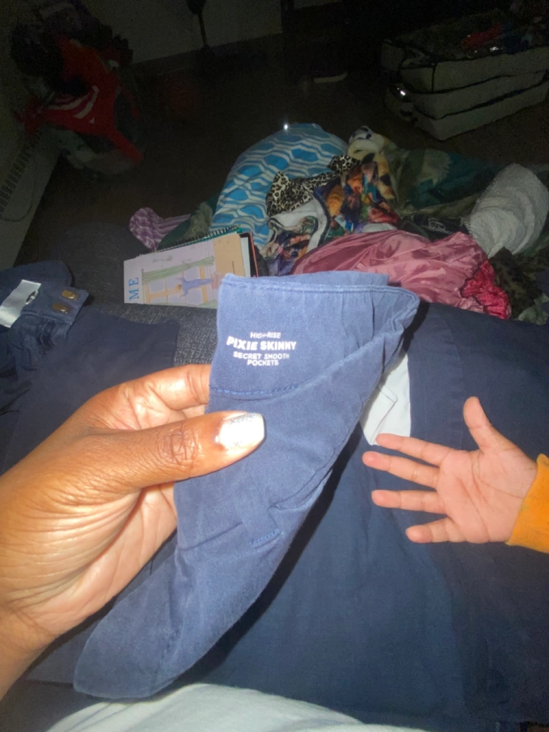 Selling a pair of Old Navy Pixie Skinny pants! They're high-rise and feature secret smooth pockets..... 6 pair of women sizes 6 and 4 are up for sale... they are navy blue and in really good condition... there is a pair of French toast sweatpants here too a size 14/16 kids as well as a Scort 14/16 kids from old navy ... each pair are $15 and check old navy for their prices