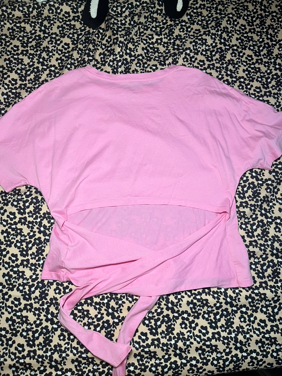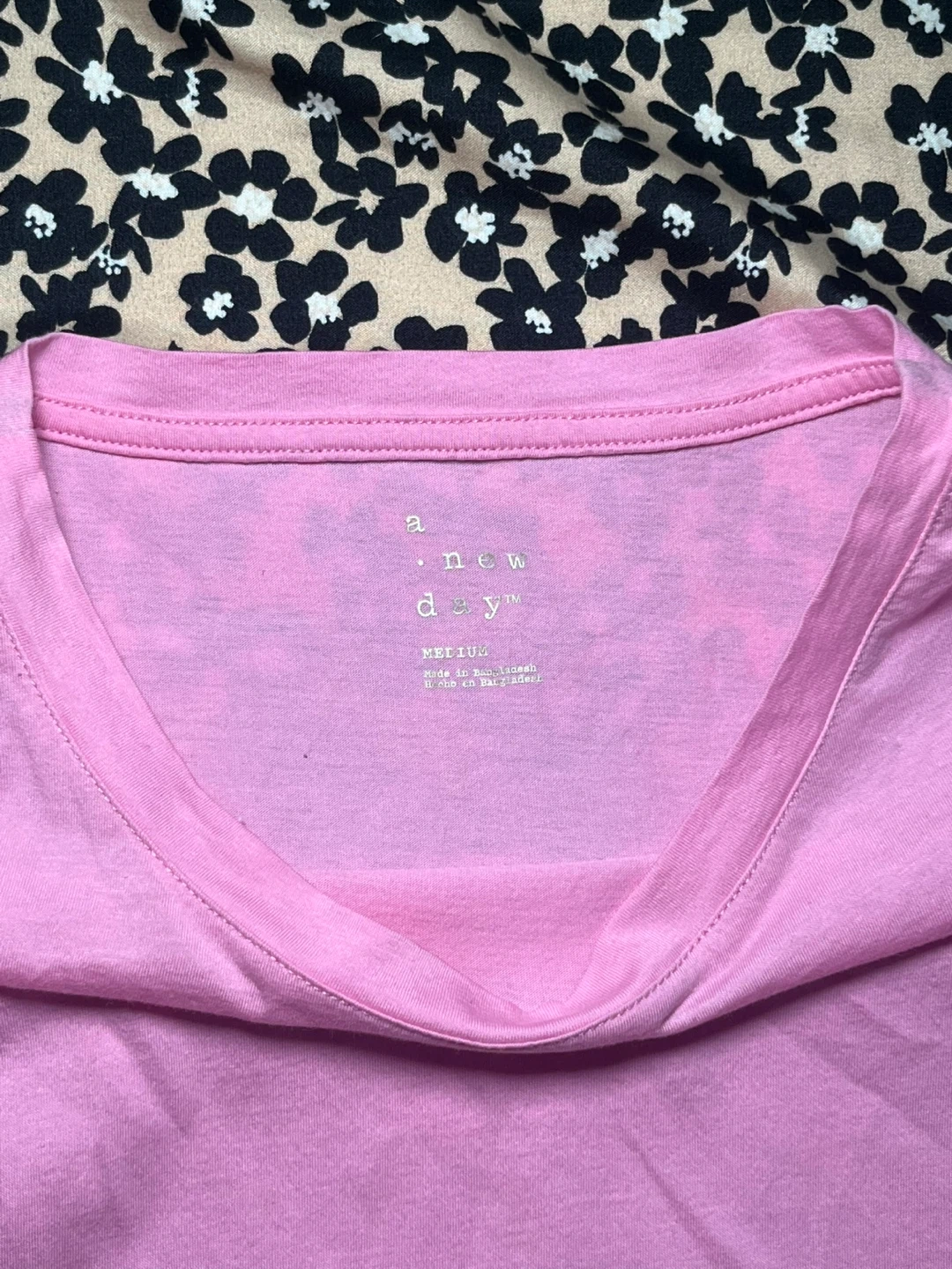 Selling a cute pink t-shirt from A New Day! It features a fun tie-back detail and is a size medium. It's perfect for adding a pop of color to your wardrobe and is in great condition!