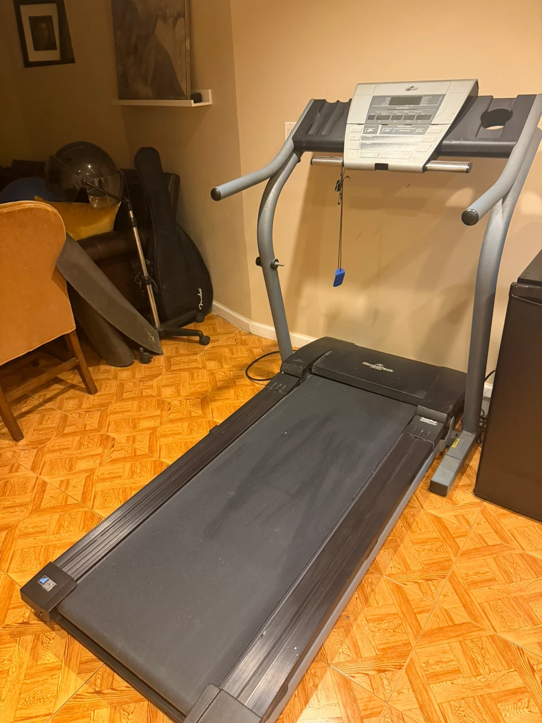 This is a NordicTrack treadmill, foldable, upright, easy to store. It is in working condition. You’re responsible for the pick up.